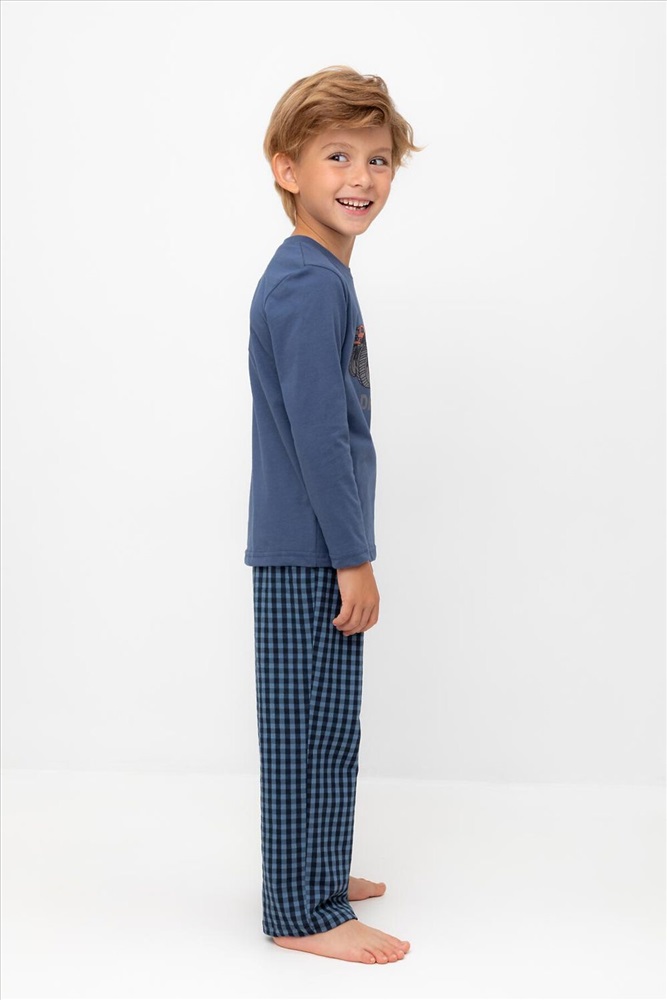 Трикотажная пижама из натурального хлопка. Джемпер с длинными рукавами с принтом. У брюк эластичный пояс на резинке. Оригинальные принт и набивка выполнены из стойких, гипоаллергенных текстильных красителей. Пижама сохраняет цвет и форму после многократных стирок. Все трикотажные полотна производятся в соответствии с нормами Швейцарского сертификата ЭкоТекс.