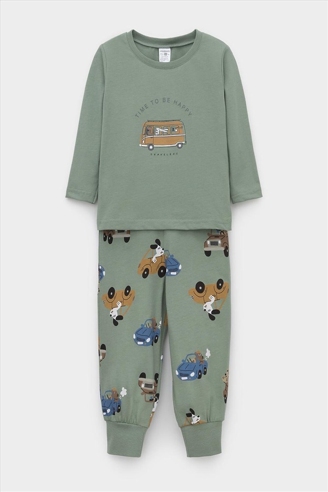 ID товара: 1216410 Состав: 100% Хлопок Сезон: Демисезон Длина: Полная Фасон: Прямой Рукав: Длинные Декоративные элементы: Принт Основная ткань: Хлопок Страна бренда: Россия Страна производства: Россия Трикотажная пижама из натурального хлопка. Джемпер с длинными рукавами с эластичными манжетами. У брюк эластичный пояс на резинке. Оригинальная набивка и принт выполнены из стойких, гипоаллергенных текстильных красителей. Пижама сохраняет цвет и форму после многократных стирок. Все трикотажные полотна производятся в соответствии с нормами Швейцарского сертификата ЭкоТекс. Комментарии к товару