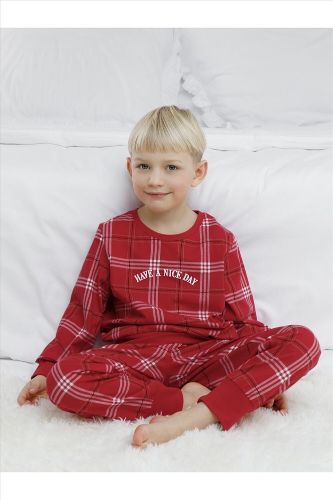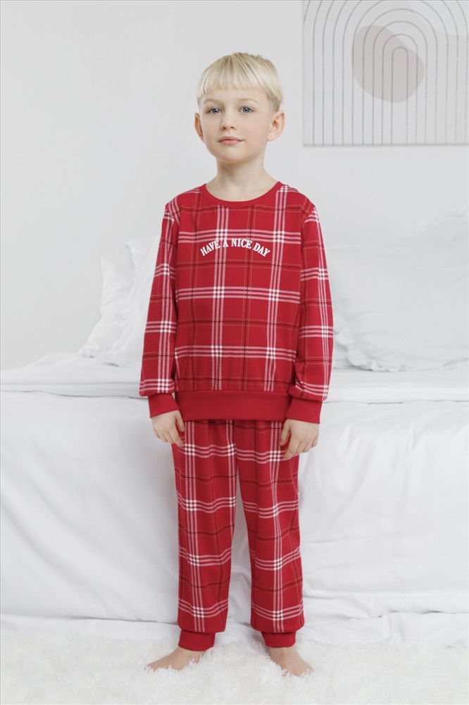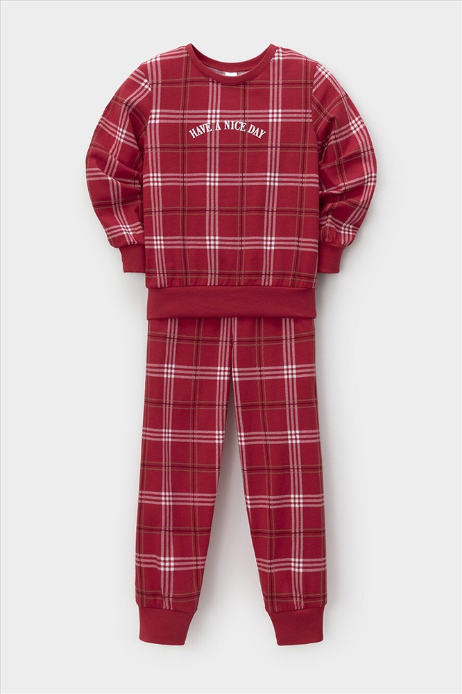 Трикотажная пижама из натурального хлопка. Джемпер с длинными втачными рукавами и брюки с эластичной резинкой в поясе. Мягкие манжеты на рукавах и по низу брюк. Пижама отлично подойдёт для создания уютных домашних образов или в качестве подарка на Новый год и Рождество. Оригинальная набивка и принт выполнены из стойких текстильных гипоаллергенных красителей. Изделие сохраняет цвет и форму после многократных стирок. Все трикотажные полотна производятся в соответствии с нормами швейцарского сертификата ЭкоТекс.