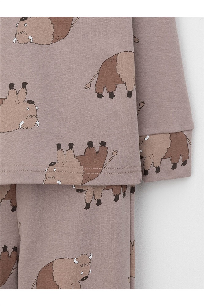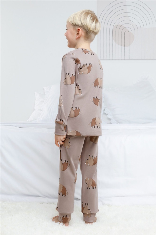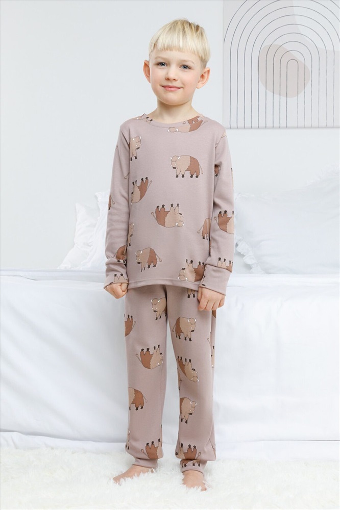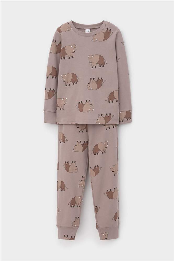 Трикотажная пижама из натурального хлопка. Джемпер с длинными втачными рукавами. У брюк в комплекте мягкий, эластичный пояс на резинке. Оригинальная набивка выполнена из стойких, гипоаллергенных текстильных красителей. Комплект сохраняет цвет и форму после многократных стирок. Все трикотажные полотна производятся в соответсвии с нормами Швейцарского сертификата ЭкоТекс.