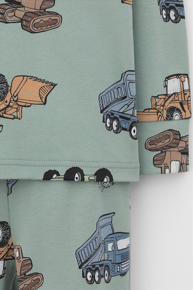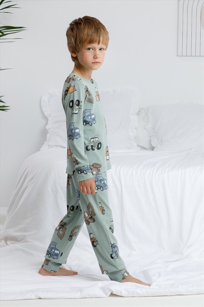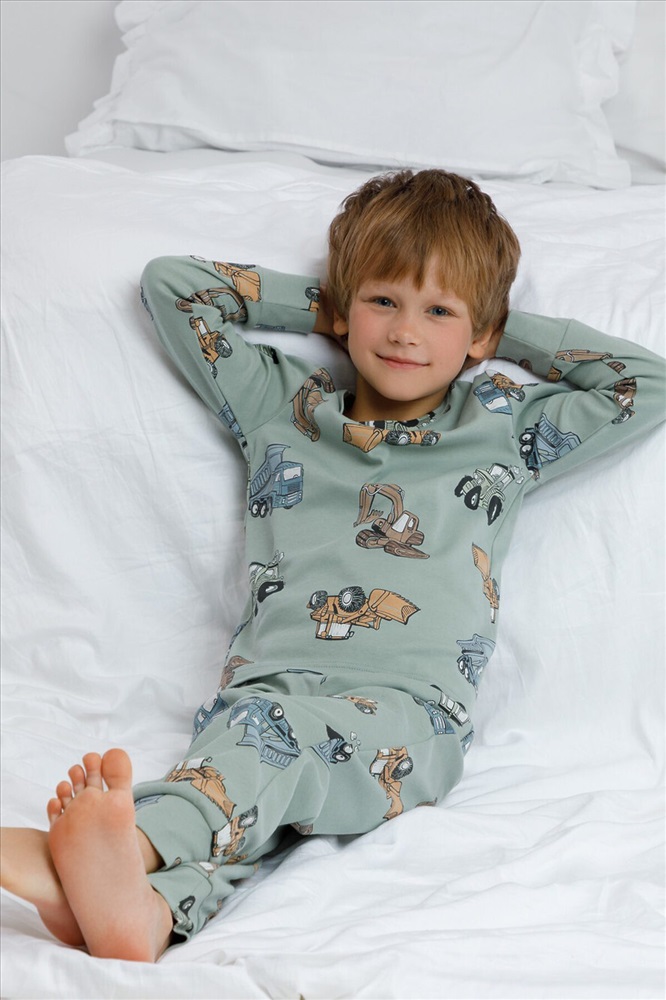 Трикотажная пижама из натурального хлопка. Джемпер с длинными втачными рукавами и брюки с эластичной резинкой в поясе. Мягкие манжеты на рукавах и по низу брюк. Оригинальная набивка выполнена из стойких текстильных гипоаллергенных красителей. Изделие сохраняет цвет и форму после многократных стирок. Все трикотажные полотна производятся в соответствии с нормами швейцарского сертификата ЭкоТекс.