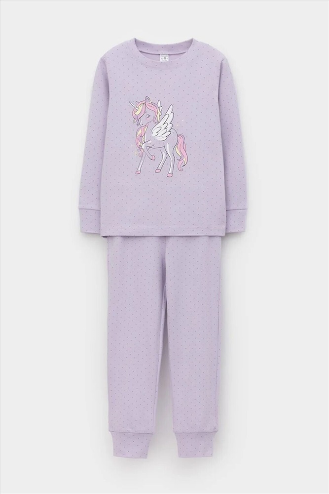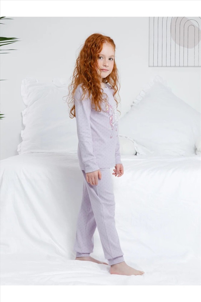 Трикотажная пижама из натурального хлопка. Джемпер с длинными втачными рукавами и брюки с эластичной резинкой в поясе. Мягкие манжеты на рукавах и по низу брюк. Оригинальная набивка и принт выполнены из стойких текстильных гипоаллергенных красителей. Изделие сохраняет цвет и форму после многократных стирок. Все трикотажные полотна производятся в соответсвии с нормами швейцарского сертификата ЭкоТекс.