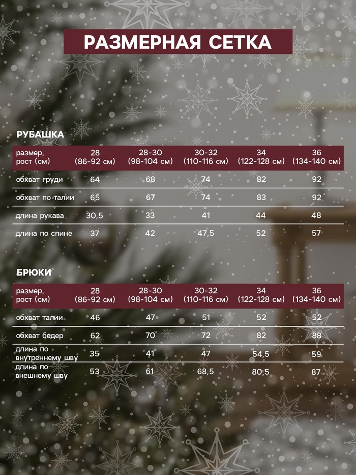 Габариты: 27 x 22 x 2,5 В боксе: 68 комплект Для кого: Для мальчика, Для девочки Назначение: Домашняя, Новый год Размер: 30 Рост, см: 98, 104 Рекомендации по уходу: Стирка при 30 °С, Бережный режим глажки, Не отбеливать, Деликатный режим отжима Составляющие набора: Брюки, Рубашка Страна: Россия Состав: Хлопок 100% Материалы: хлопок Фасовка: по 1 комплект Сертификат: ЕАС Цвет: Красный Ткань: Кулирка пенье Сезон: Всесезонный Вид застёжки: Пуговицы(-а) Тематика: Новогодняя, Клетка Тематика праздника: Новый год Вырез горловины: Воротник-стойка Декоративные элементы: Без элементов Крой брючин: Прямой Покрой: Свободный Тип карманов: Без карманов Тип посадки: Средняя Состав ткани: Хлопок Комментарии к товару