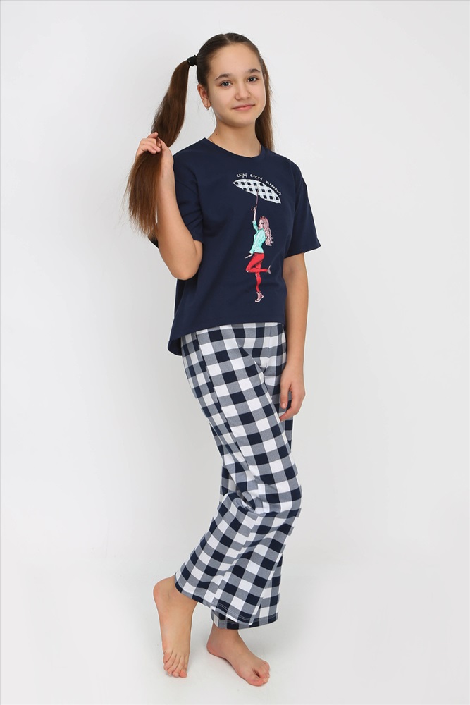 Состав: 100% Хлопок Модель: Пижама Диляра детская Тип товара: пижама с брюками Бренд: Ивашка Материал: кулирка Назначение: для дома Отделка: с печатью Посадка: высокая посадка Рисунок: клетка | разное Рукав: короткий рукав Сезонность: лето | осень | весна Силуэт: свободный Стиль: домашний Пижама для подростка из мягкой хлопковой ткани. Футболка на полочке украшена принтом. Удобная, не сковывает движений. Таблица размеров и весафутболка