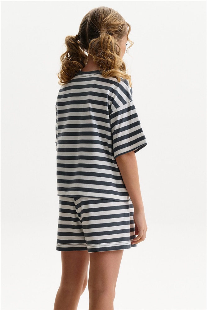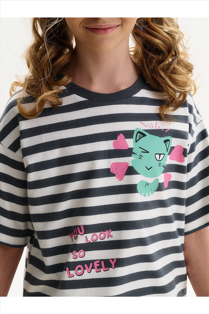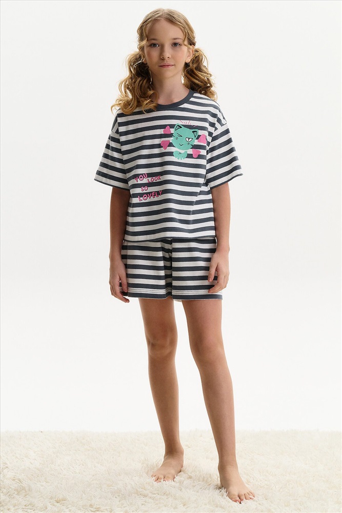ID товара: 1242576 Состав: Верх- 100%хлопок, низ- 100%хлопок Сезон: Демисезон Детский пижамный костюм двойка - это мягкая укороченная футболка свободного кроя с коротким рукавом и широкие удлиненные шорты, выполненные из натуральных материалов. Пижама для девочки изготовлена из 100% хлопка. Широкая и мягкая резинка в поясе шортов не перекручивается и не давит. Отделка горловины из эластичной рибаны — она не растягивается, ребёнку удобно надевать и снимать пижаму. Перевод текста: "ты выглядишь так прекрасно". Комментарии к товару