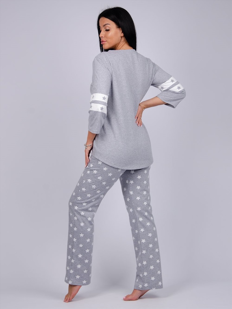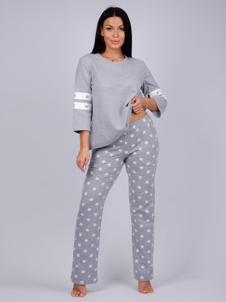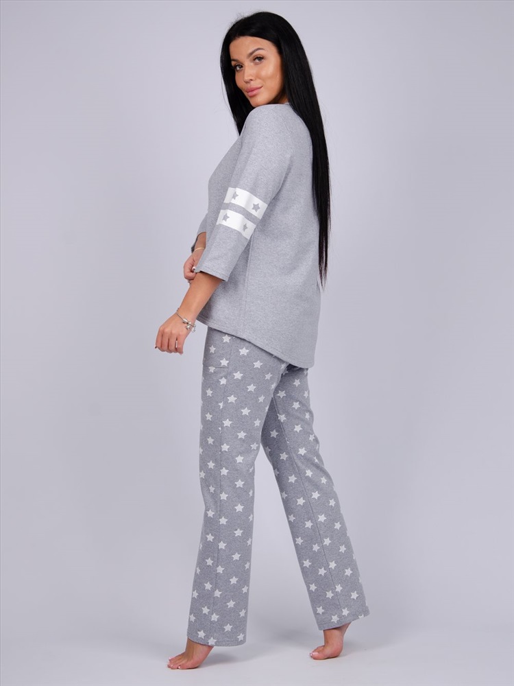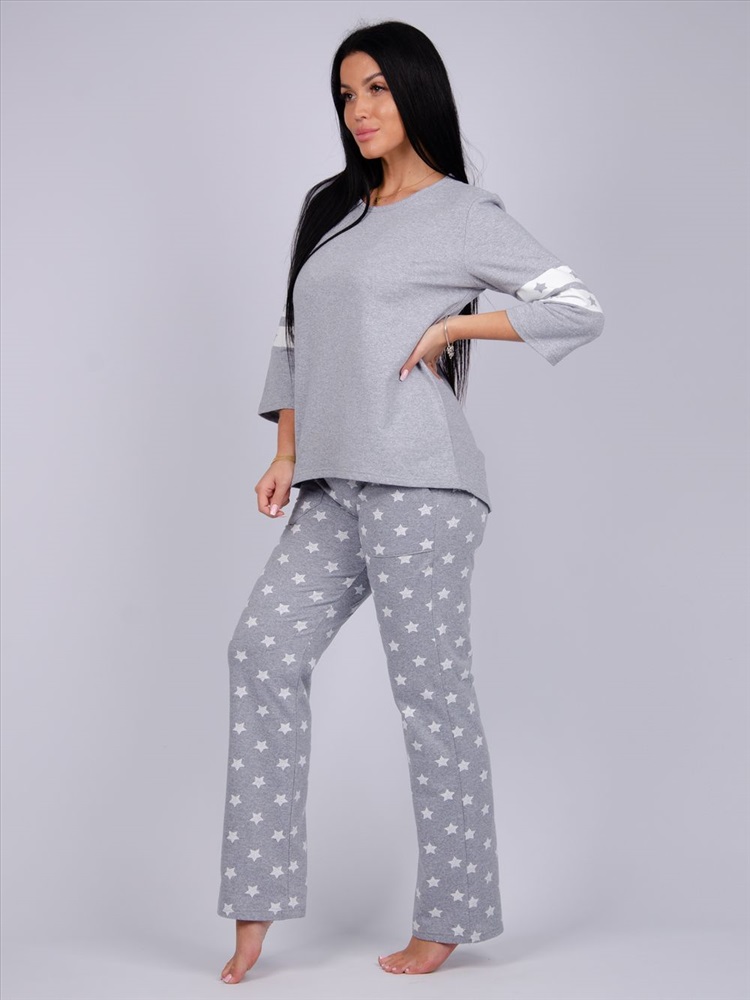 Пижама имеет теплый дизайн, что делает её отличным решением на прохладное время года. Благодаря свободному крою и легким материалам, вы сможете свободно двигаться, не ощущая никакого дискомфорта. Эта пижама особенно порадует тех, кто предпочитает модели больших размеров, создавая гармоничный и стильный образ на каждую ночь.