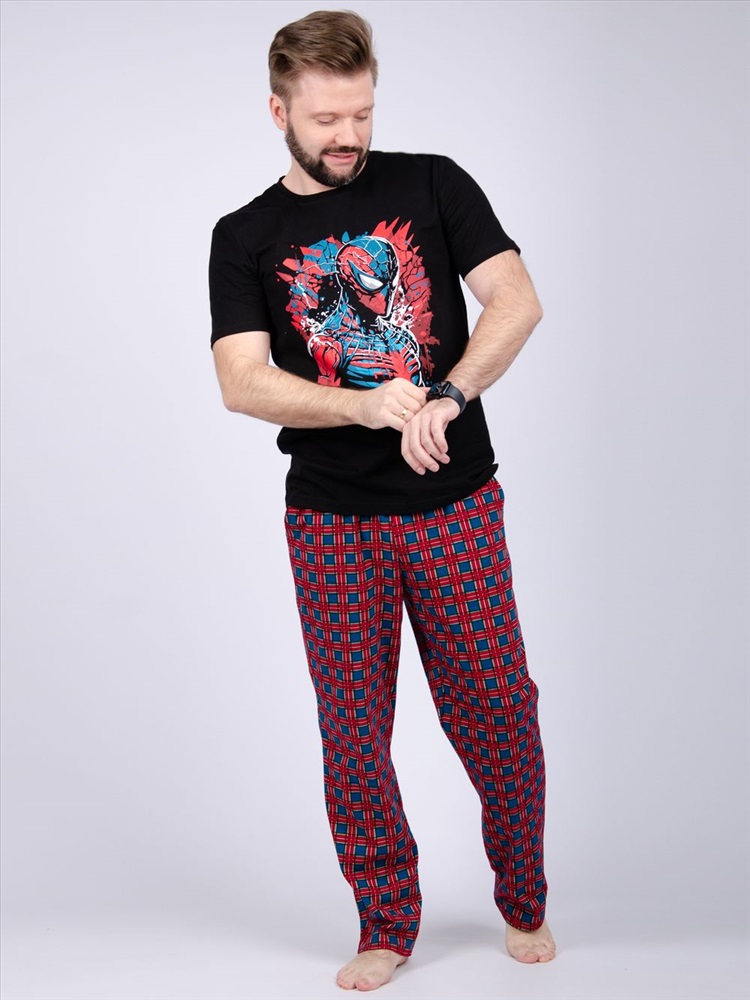 Пижама мужская: футболка прямого кроя с короткими рукавами с принтом на полочке, брюки прямые, с карманами в боковых швах.
