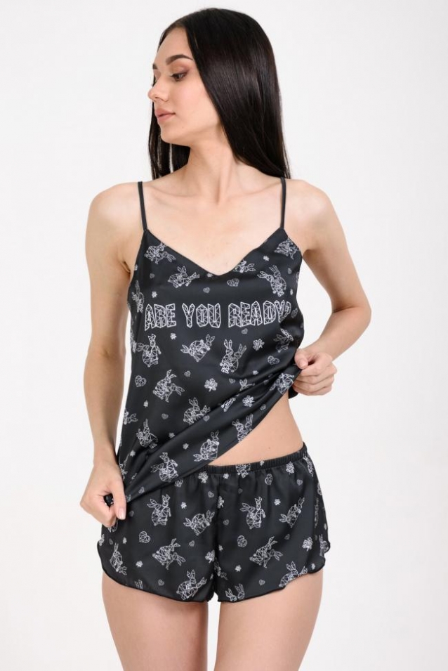 Пижама женская Hot Story Are you ready, в элегантной комплектации из удлиненного топа и сексуальных шортиков. Оригинальный принт создаст незабываемый образ. Лёгкая и невесомая пижама из антистатического жемчужного шелка придется по вкусу даже самым капризным представительницам слабого пола. Мягкий струящийся шёлк красиво подчеркнёт достоинства фигуры. Благодаря идеальному крою, пижама будет не только удобной, но и очень соблазнительной. Пижама упакована в брендовую косметичку, поэтому идеально подойдет в качестве подарка! Индивидуальные принты, разработанные дизайнерами с разных уголков нашей страны, привлекут внимание к новой детали твоего гардероба. Hot Story - для огненных взглядов и жарких ночей!