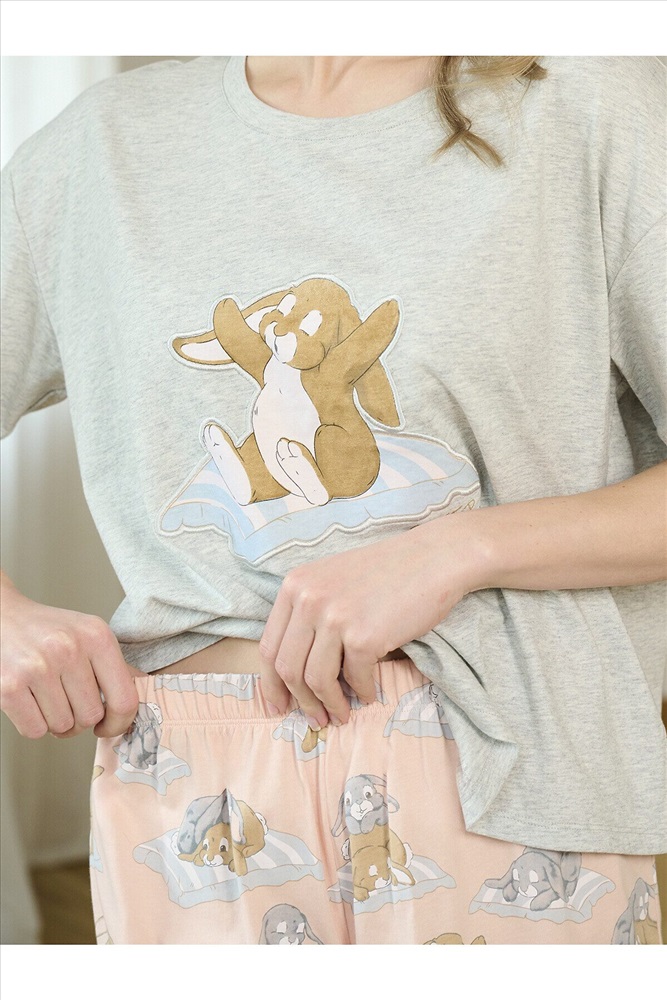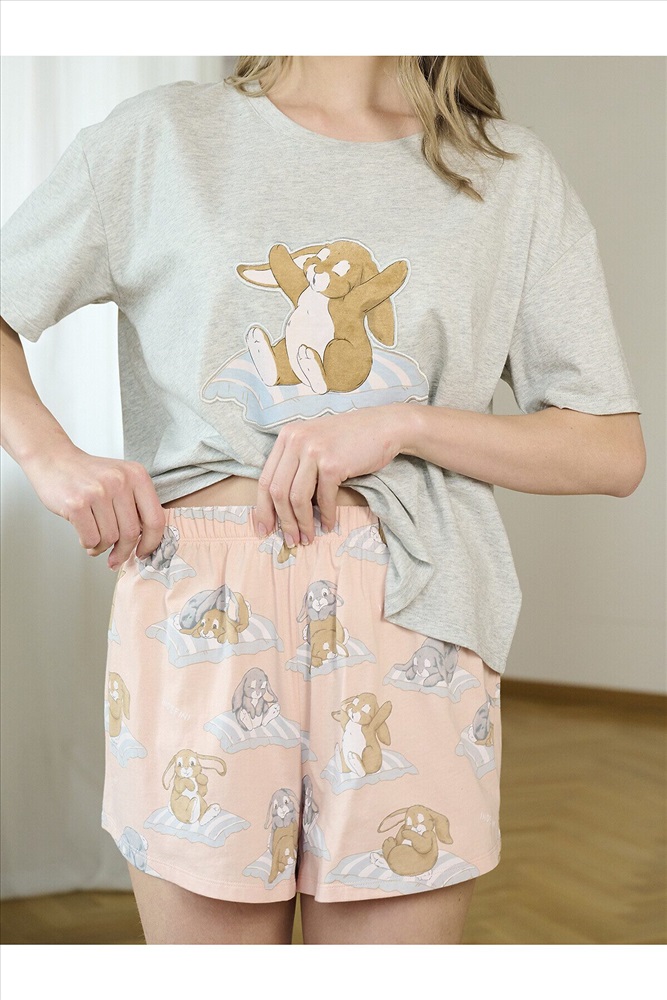 ID товара: 1218413 Состав: 100% Хлопок Сезон: Демисезон Длина: Средняя Фасон: Свободный Рукав: короткие Декоративные элементы: Принт Основная ткань: Хлопок Страна бренда: Россия Страна производства: Китай Пижама женская 5231TBD бренда Indefini изготовлена из 100% хлопка. Состоит из футболки и шорт. Выполнена в двухцветной комбинации: футболка — светло-серая меланж, шорты — нежно-розовые. Футболка свободного кроя с круглым вырезом горловины и короткими рукавами. На груди расположен принт с изображением милого кролика на подушке. Шорты на мягкой эластичной резинке с повторяющимся принтом кроликов на подушках по всему изделию. Комментарии к товару