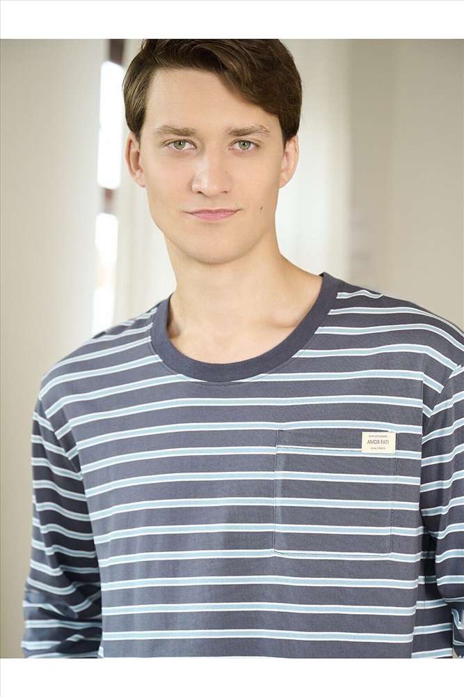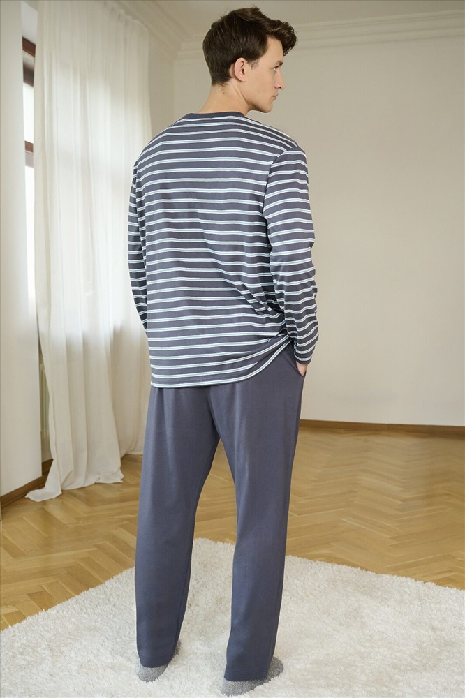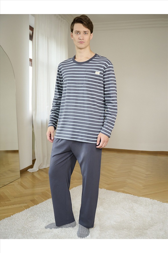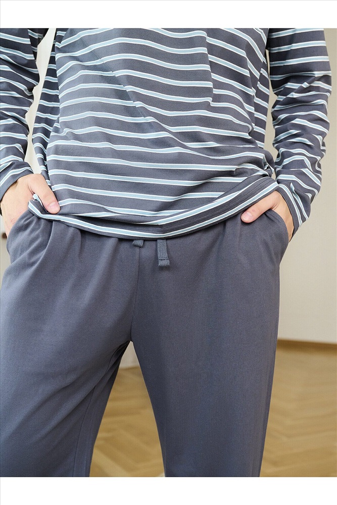 Пижама состоит из лонгслива с длинными рукавами и свободных брюк — классический набор для комфортного отдыха. Выполнена из 100% хлопка: не прилипает к телу, «дышит», не вызывает раздражения.