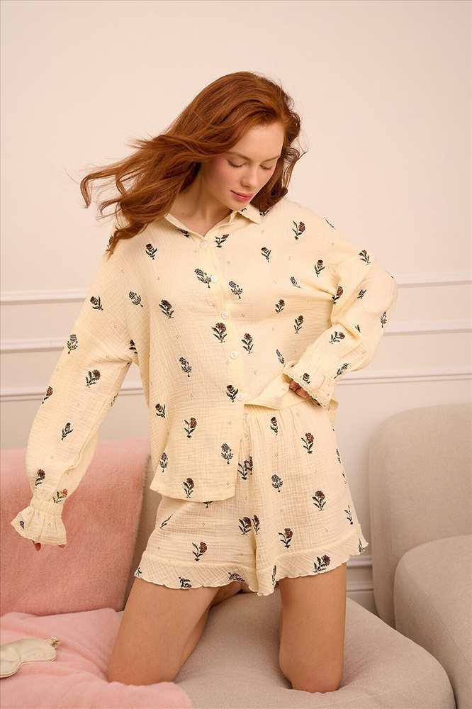 ID товара: 1233270 Состав: 100% Хлопок Сезон: Весна/Лето Рукав: Длинные Страна бренда: Россия Страна производства: Китай Пижама с шортами Комментарии к товару