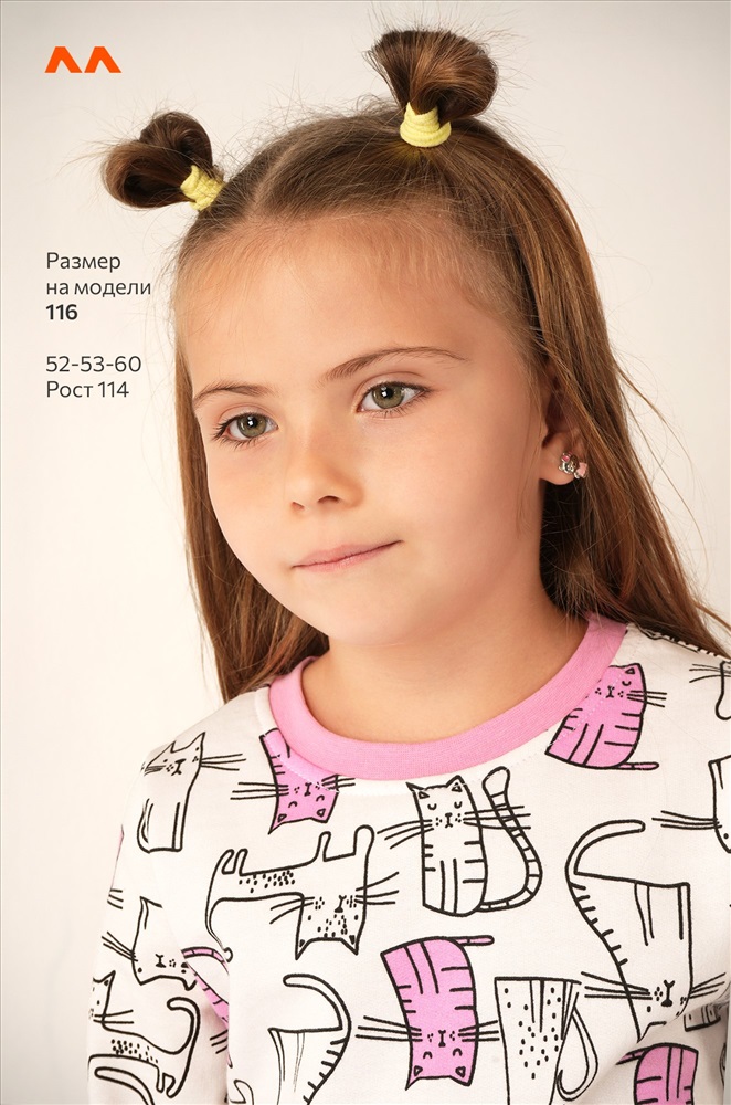 Рост модели 114, параметры: объем груди 52, объем талии 53, объем бедер 60. На нем размер 116.