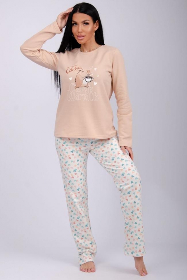Эта уютная пижама создана специально для комфортного отдыха и сна. Она выполнена из мягкого хлопка, который обеспечивает тепло и комфорт в холодное время года. В комплект входят штаны и кофта с длинным рукавом. Свободный крой не стесняет движений и позволяет чувствовать себя комфортно во время сна или домашнего отдыха. Материал пижамы 100% хлопок, натуральный и гипоаллергенный. Это гарантирует безопасность и комфорт при носке. Начес внутри пижамы создает дополнительный слой тепла, что особенно актуально в зимний период.