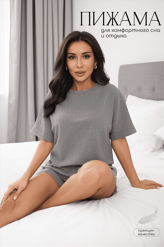 ID товара: 1206942 Состав: 100% Хлопок Сезон: Демисезон Длина: Средняя Фасон: Свободный Рукав: короткие Основная ткань: Хлопок Страна бренда: Россия Страна производства: Россия Состав : 100% хлопок Материал : муслин Цвет : серый Принт : отсутствует Силуэт : свободный Карманы : отсутствуют Резинка в поясе : да Вид застежки : без застёжки Декоративные элементы : отсутствуют Отснято с халатом-кимоно П14577-52М Комплект для дома и отдыха из муслина — это гармоничное сочетание стиля и удобства. Он создан для того, чтобы подарить вам незабываемые моменты расслабления и наслаждения. В комплект входят футболка и шорты, которые идеально сочетаются друг с другом. Футболка укороченного кроя с цельнокроеными рукавами, обработанными манжетами, и свободным силуэтом обеспечивает максимальный комфорт. Шорты свободного кроя с цельнокроеным поясом и тонкой мягкой резинкой по талии. Муслин — это натуральная ткань из хлопка, которая идеально подходит для домашнего отдыха. В ней вы будете чувствовать себя комфортно и уютно. Позвольте себе насладиться отдыхом с нашим новым комплектом из муслина и получите максимум удовольствия и стиля! Внимание! Рекомендуем ориентироваться на размерную сетку и выбирать свой привычный размер, согласно размерной таблице. *Допуск отклонения длины при массовом производстве 1-3 см является нормой. Уход за изделием: Ручная стирка или стирка в машине при температуре до 30 °C, деликатный режим. Не использовать отбеливатели. Разрешена глажка при температуре до 110 °C. При глажке использовать специальную насадку на подошве утюга, гладить с паром. Не замачивать и не выжимать. Стирать изделие наизнанку, отдельно от других вещей. Комментарии к товару
