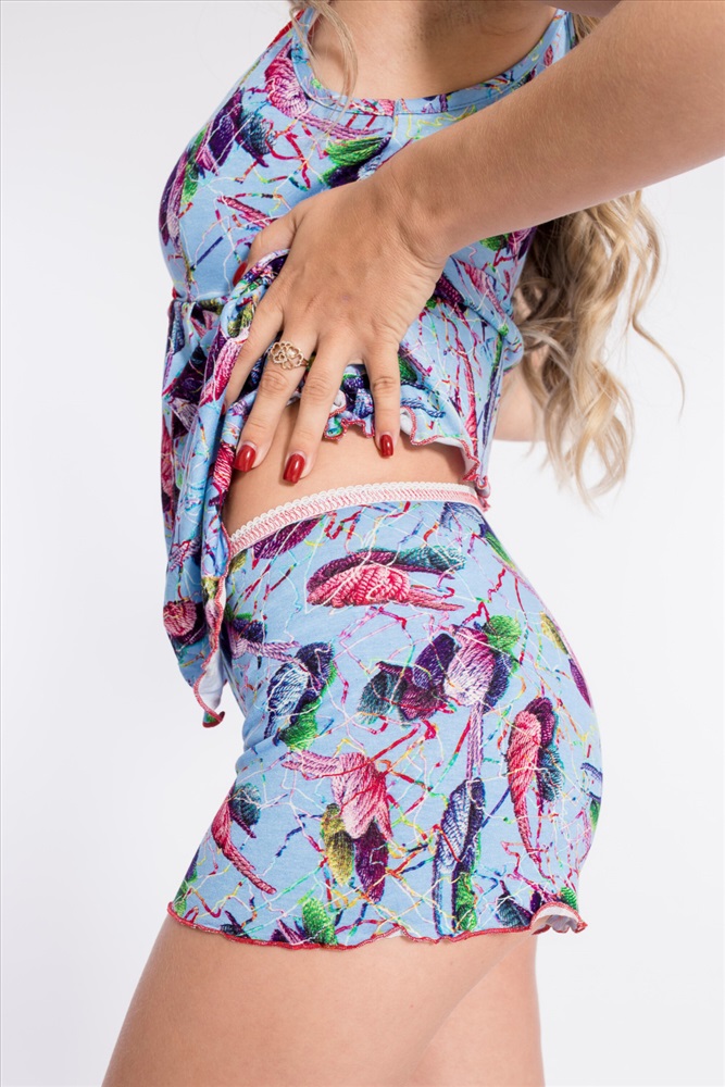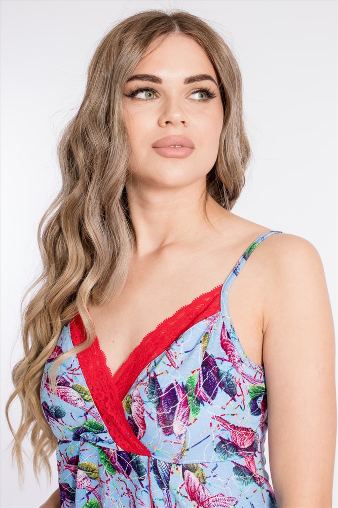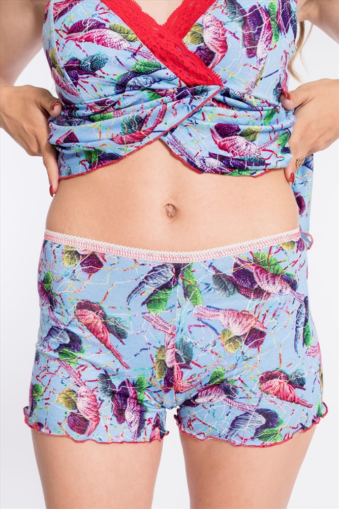 Вид верха комплекта: Топ Вид низа комплекта: Шорты Вид ткани: Вискоза Сезон: Всесезонный Состав: Вискоза 95% Лайкра 5% Цвет Номенклатуры: голубой/красный