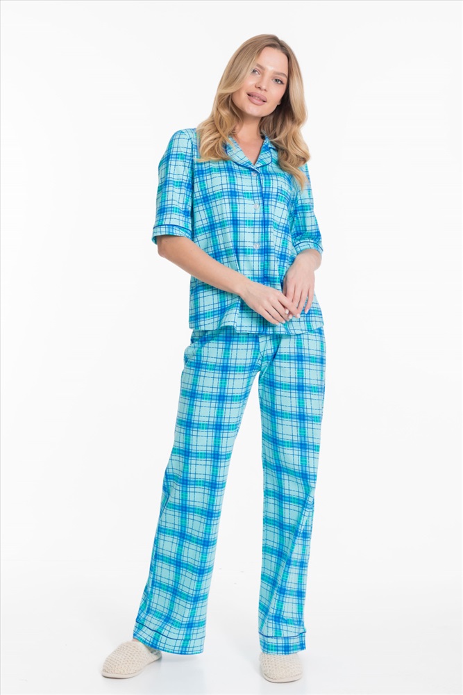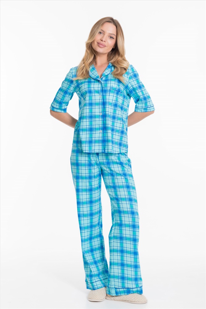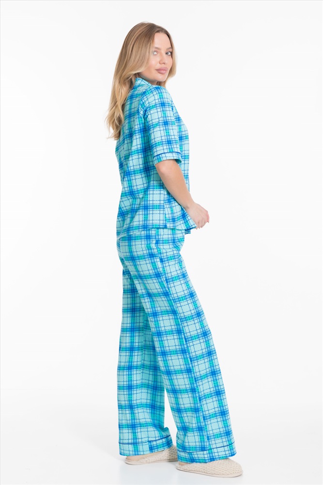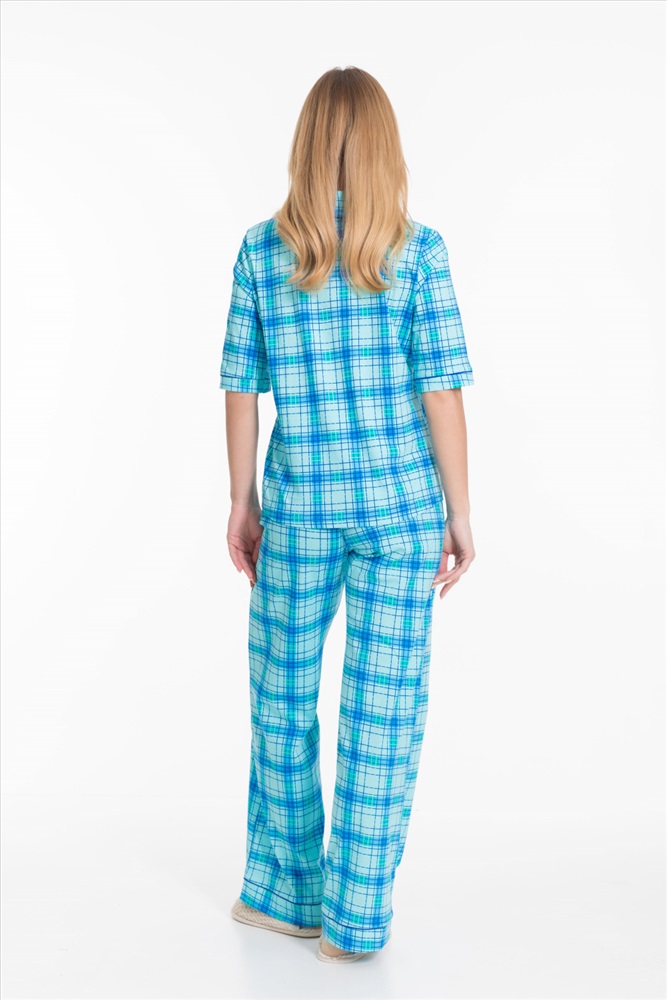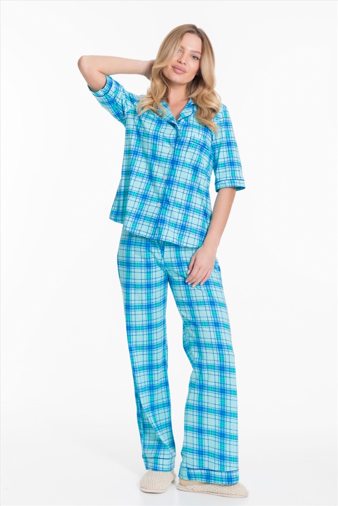 Вид верха комплекта: Рубашка Вид низа комплекта: Брюки Вид ткани: Кулирка Сезон: Всесезонный Состав: Хлопок 100% Цвет Номенклатуры: ментол