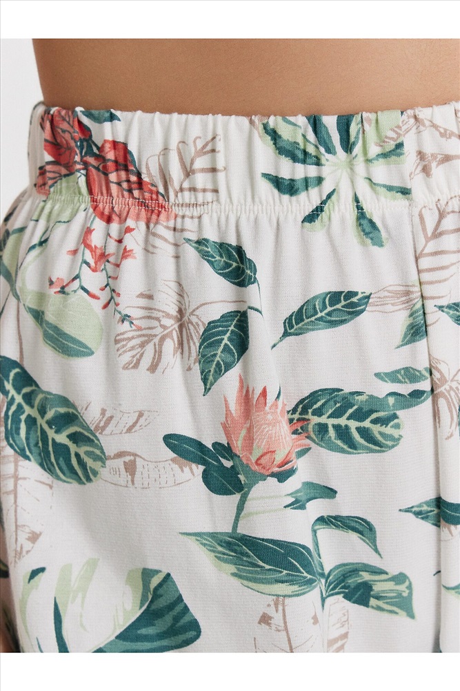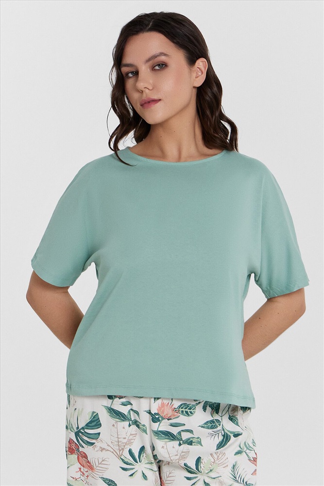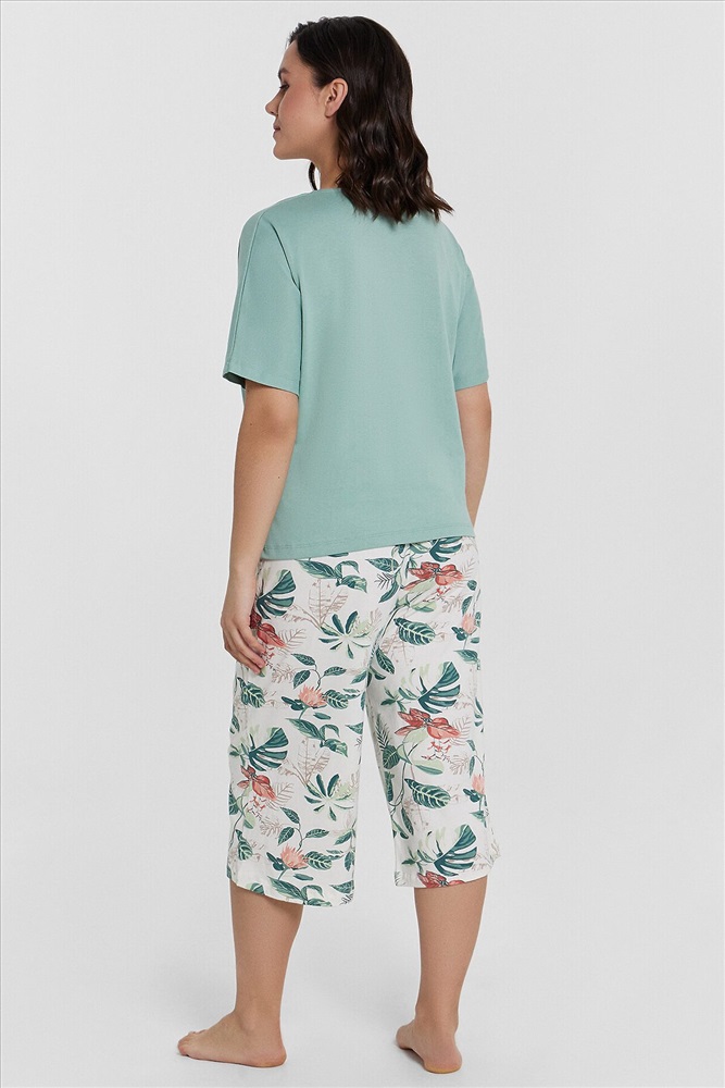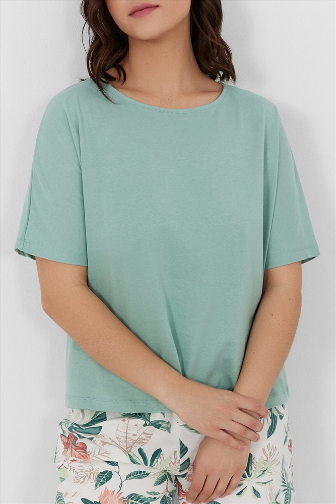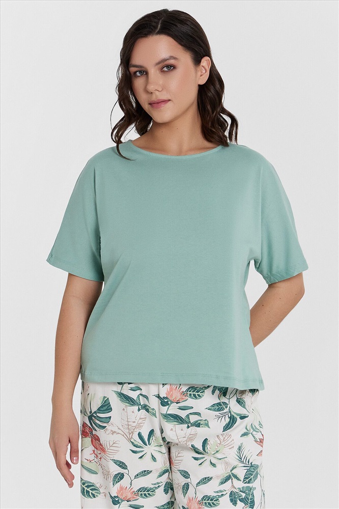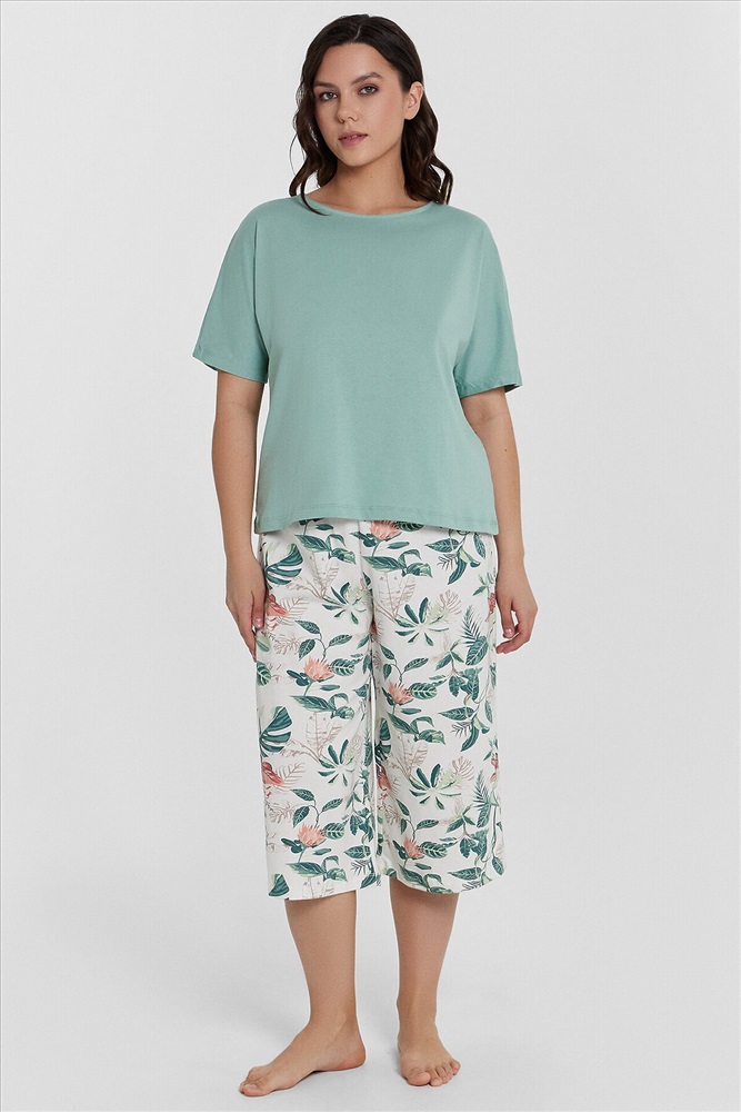 ID товара: 1131380 Состав: 100% Хлопок Сезон: Демисезон Длина: Средняя Фасон: Свободный Рукав: короткие Вид застежки: Без застежки Модель юбки/платья: Без юбки Тип карманов: Без карманов Декоративные элементы: Кружево Утеплитель: Без утепления Основная ткань: Хлопок Уход: Деликатная стирка при 30 градусах Воротник: Нет Модель брюк: Укороченные Фактура материала: Кулирное полотно Страна бренда: Беларусь Страна производства: Беларусь Пижама женская для ваших комфортных домашних образов - идеальный выбор для уютных вечеров и расслабленного отдыха. Комплект состоит из футболки и бриджей. Джемпер свободного силуэта с круглой горловиной и рукавами длиной выше локтя обеспечивает максимальный комфорт и свободу движений. Бриджи с комфортной посадкой на талии прямого кроя дополняют комплект, создавая гармоничный и стильный образ. Изделие выполнено из нежной кулирки - материала, который отличается особой мягкостью, воздухопроницаемостью и прочностью. Кулирка прекрасно впитывает влагу и быстро сохнет, обеспечивая комфорт в течение всего дня. Эта пижама станет вашим любимым вариантом для домашних образов, сочетающим в себе удобство и элегантность. Рекомендуем! Комментарии к товару