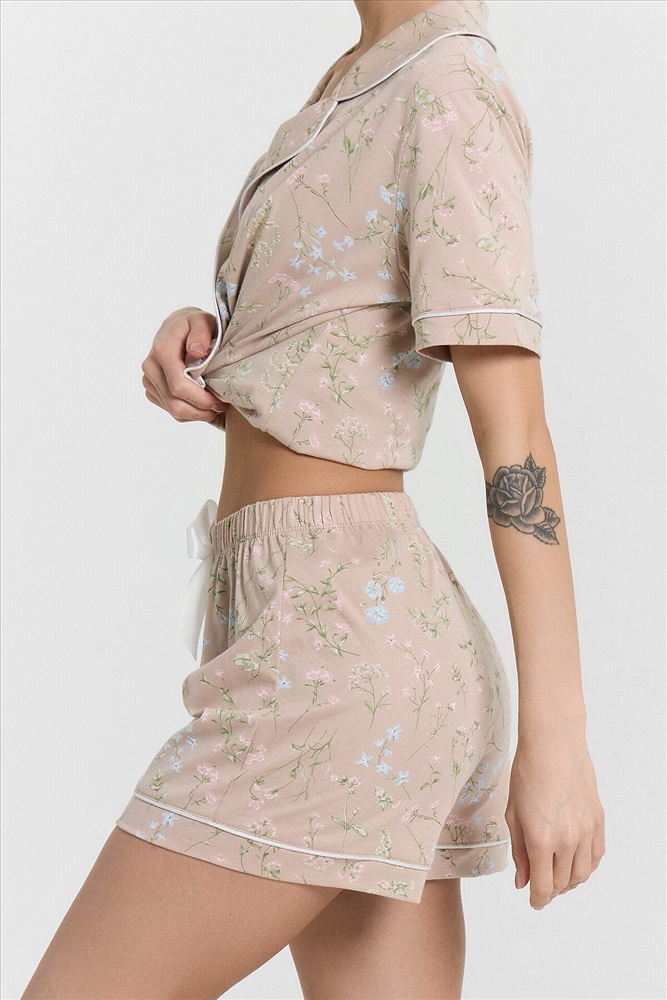 ID товара: 1132953 Состав: 100% Хлопок Сезон: Демисезон Длина: Средняя Фасон: Полуприлегающий Рукав: короткие Вид застежки: Пуговицы Модель юбки/платья: Без юбки Тип карманов: Без карманов Декоративные элементы: Кант Утеплитель: Без утепления Основная ткань: Хлопок Уход: Деликатная стирка при 30 градусах Модель брюк: Шорты Фактура материала: Кулирное полотно Страна бренда: Беларусь Страна производства: Беларусь Хлопковый женский комплект актуального свободного силуэта. Рубашка прямая, с отложным воротником и лацканами, короткими рукавами, застегивается на пуговицы. Дополняют ее свободные шорты длины мини, с резиновой тесьмой в поясе и атласной тесьмой, которая завязывается на бантик. Особенность модели – контрастные канты на рукавах, воротнике и передней части рубашки. Рекомендуем для сна, отдыха и домашних дел! Комментарии к товару