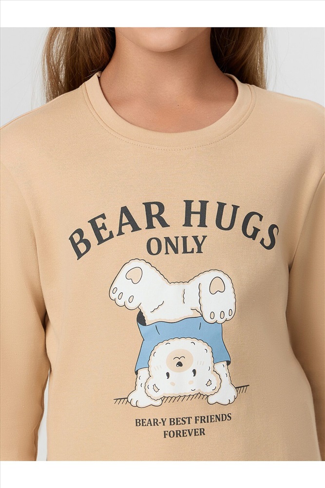 Очаровательный домашний комплект для девочки создан для комфортного отдыха и крепкого сна. В набор входит джемпер свободного кроя с длинными рукавами и удобные брюки прямого силуэта - идеальная пижама для девочки для прохладных вечеров.