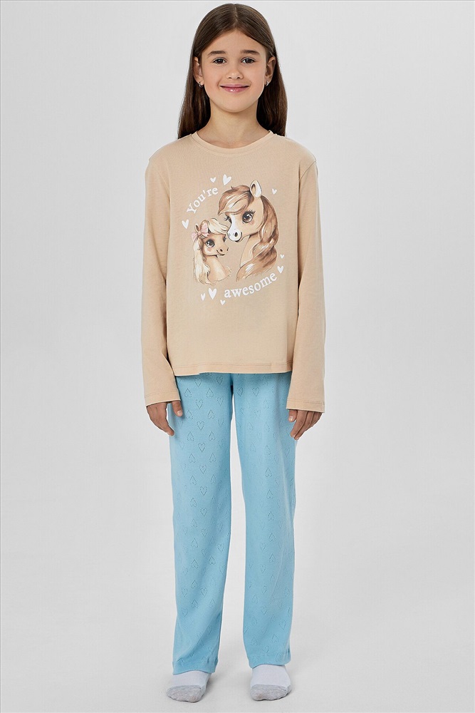 ID товара: 1211431 Состав: 100% Хлопок Сезон: Демисезон Длина: Полная Фасон: Свободный Рукав: длинные Вид застежки: Без застежки Тип карманов: Без карманов Декоративные элементы: Принт Утеплитель: Без утепления Основная ткань: Хлопок Уход: Деликатная стирка при 30 градусах Фактура материала: Кулирное полотно+рибана Страна бренда: Беларусь Страна производства: Беларусь Комплект домашней одежды для девочек с мотивирующей надписью «Ты великолепна» создан для комфортного отдыха и спокойного сна. Пижама состоит из лонгслива и брюк, выполненных из натурального хлопка, нежного к коже и гипоаллергенного. Лонгслив с круглой горловиной и длинными рукавами обеспечивает удобство и свободу движений во время сна или игр перед сном. Брюки прямого кроя на мягком широком поясе с эластичной резинкой не давят на талию и надежно фиксируются, не сползая при активном движении. Оба предмета изготовлены из эластичной рибаны, которая хорошо тянется, сохраняет форму после множества стирок и позволяет коже дышать. Нежная ткань обеспечивает приятные тактильные ощущения и комфорт в течение всей ночи, поддерживая идеальную температуру тела. Этот комплект станет отличным подарком для каждой девочки, напоминая ей о ее уникальности и создавая атмосферу заботы и уюта. Комментарии к товару