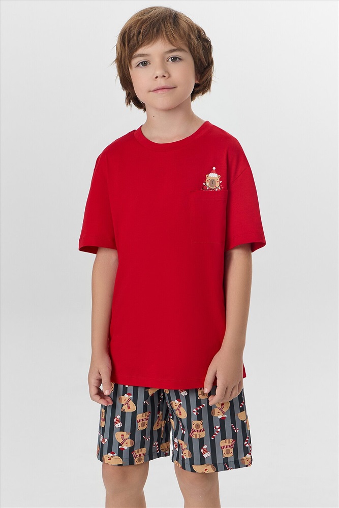 ID товара: 1212127 Состав: 99% Хлопок; 1% Эластан Сезон: Демисезон Длина: Средняя Фасон: Свободный Рукав: короткие Вид застежки: Без застежки Вырез горловины: Круглый Тип карманов: Накладные Декоративные элементы: Принт Утеплитель: Без утепления Основная ткань: Хлопок Уход: Деликатная стирка при 30 градусах Фактура материала: Кулирное полотно+ткань Страна бренда: Беларусь Страна производства: Беларусь Комплект для мальчиков состоит из джемпера из кулирки (Sj-001.01.140) и текстильных шортов (Tco-049.01.110). Горловина круглой формы с притачной обтачкой из основго полотна. Рукава короткие втачные. Перед и спинка цельнокроеные. Карман настрочной с отделочными закрепками. Низ джемпера и рукавов обработан швом вподгибку. Пояс цельнокроенный с эластичной тесьмой 30 мм внутри. Комментарии к товару