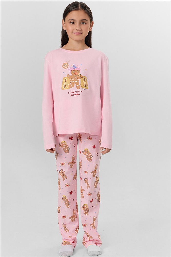 ID товара: 1216482 Состав: 100% Хлопок Сезон: Демисезон Длина: Полная Фасон: Прямой Рукав: длинные Вид застежки: Без застежки Тип карманов: Без карманов Декоративные элементы: Принт Утеплитель: Без утепления Основная ткань: Хлопок Уход: Деликатная стирка при 30 градусах Фактура материала: Кулирное полотно Страна бренда: Беларусь Страна производства: Беларусь Комплект для девочек состоит из лонгслива и брюк. Горловина круглой формы с притачной обтачкой из основного полотна. Рукава длинные втачные. Перед и спинка цельнокроеные. Низ лонгслива и рукавов обработан швом в подгибку. Брюки длинные, прямые. Пояс цельнокроенный с эластичной тесьмой внутри (внутрення резина 30RV) ширина 30 мм. Брюки из основго полотна. Комментарии к товару