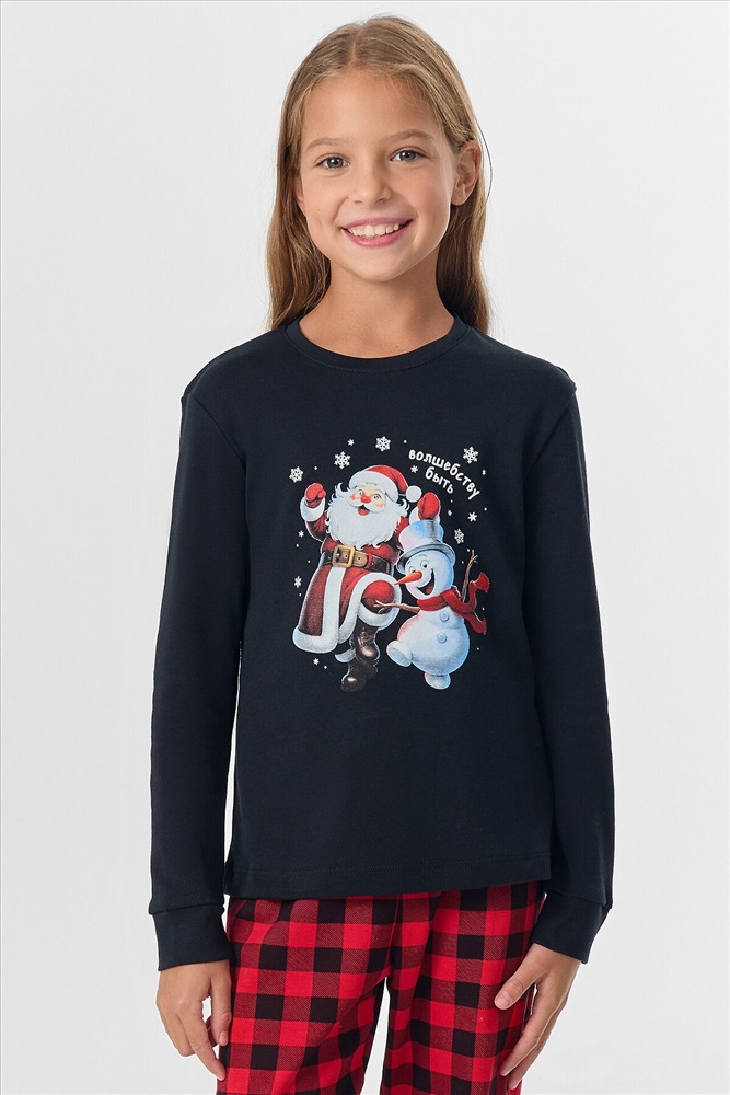Уютная пижама для девочек включает джемпер с длинными рукавами и брюки, создавая идеальный наряд для сна и отдыха в прохладное время года. Джемпер свободного силуэта с круглой горловиной и длинными рукавами с манжетами обеспечивает уют и свободу движений. Брюки прямого кроя также имеют манжеты, а пояс с эластичной тесьмой гарантирует отличную посадку и комфорт. Изделие выполнено из хлопка интерлок - это материал, который отличается высокой плотностью и прочностью, но при этом остается мягким и приятным к телу. Интерлок прекрасно сохраняет тепло, что делает его идеальным для холодного времени года, и обеспечивает отличную воздухопроницаемость, позволяя коже дышать.