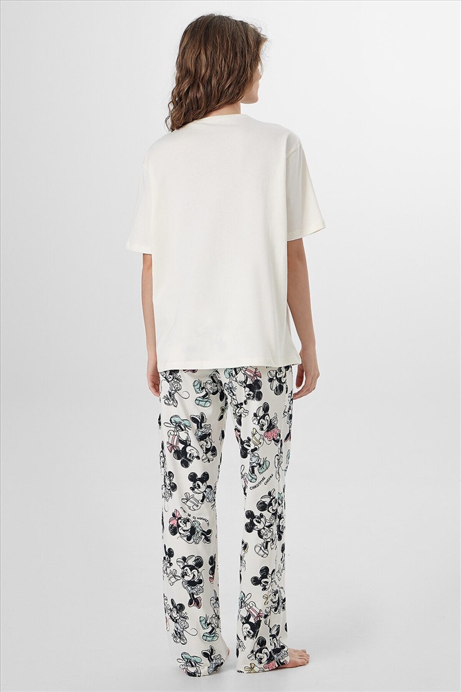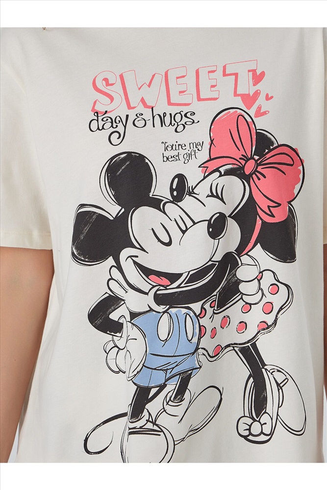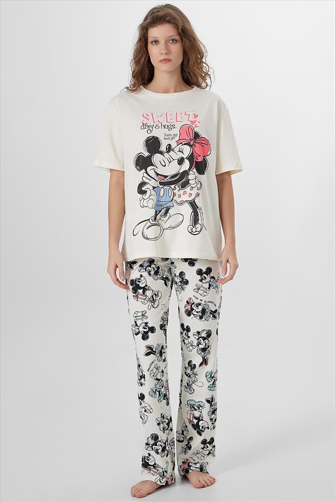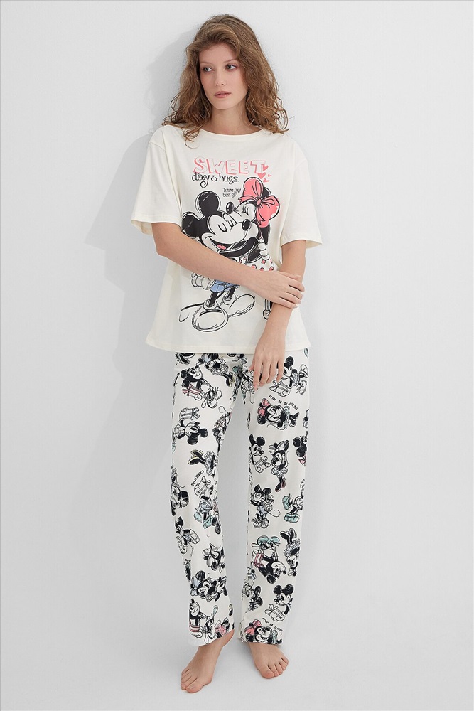 ID товара: 1217860 Состав: 100% Хлопок Сезон: Демисезон Длина: Полная Фасон: Свободный Рукав: короткие Вид застежки: Без застежки Тип карманов: Без карманов Декоративные элементы: Принт Утеплитель: Без утепления Основная ткань: Хлопок Уход: Деликатная стирка при 30 градусах Модель брюк: Прямые Фактура материала: Кулирное полотно Страна бренда: Беларусь Страна производства: Беларусь Женская домашняя пижама с надписью «Сладкий день и объятия» и рисунком обнимающихся Микки и Мини Маус подарит ощущение тепла и заботы. Комплект состоит из свободной футболки и прямых брюк. Футболка с овальным вырезом горловины обеспечивает комфорт, а все края аккуратно обработаны. Брюки прямого кроя с широким поясом на резинке мягко сидят по талии, не стесняя движений. Низ штанин имеет аккуратную обработку. Пижама выполнена из хлопка — натуральный материал гипоаллергенен, заботится о чувствительной коже и сохраняет оптимальный температурный баланс. Нежный рисунок с узнаваемыми диснеевскими персонажами и добрая надпись создают настроение нежности и беззаботности. Этот комплект станет прекрасным подарком для себя или близких, наполняя каждый день уютом и положительными эмоциями. Комментарии к товару
