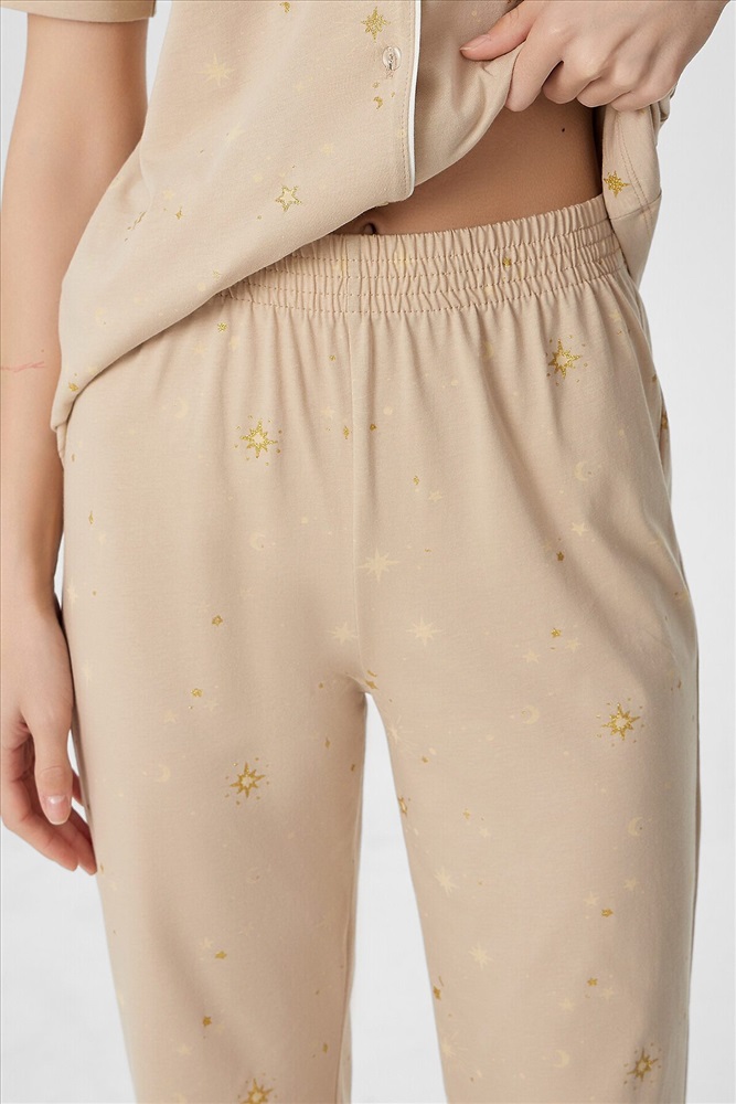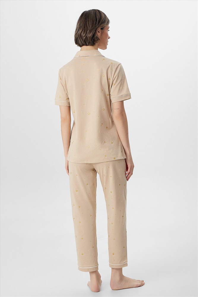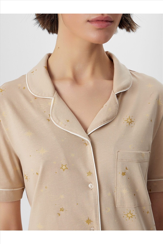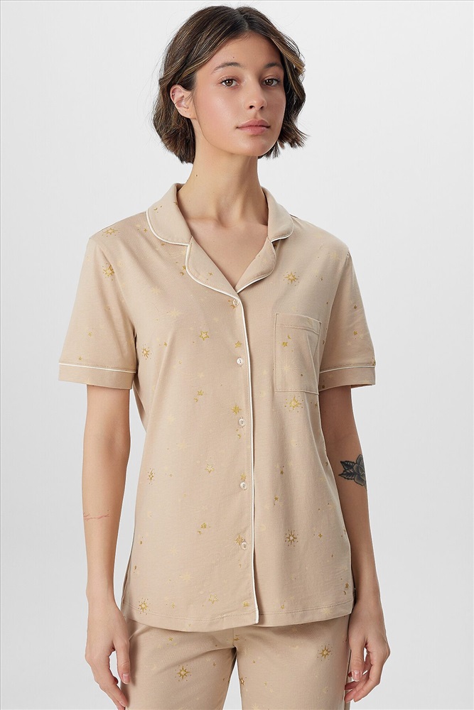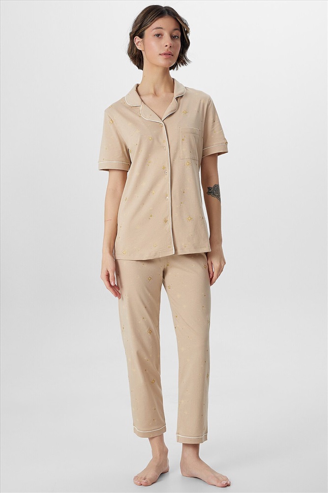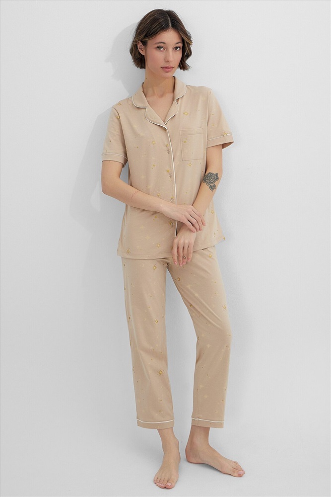 ID товара: 1218074 Состав: 100% Хлопок Сезон: Демисезон Длина: Полная Фасон: Прямой Рукав: короткие Вид застежки: Пуговицы Тип карманов: Без карманов Декоративные элементы: Кант Утеплитель: Без утепления Основная ткань: Хлопок Уход: Деликатная стирка при 30 градусах Фактура материала: Кулирное полотно Страна бренда: Беларусь Страна производства: Беларусь Пижама женская с бриджами — это элегантный комплект для комфортного отдыха и крепкого сна. В набор входит стильный джемпер с отложным воротником и свободные бриджи, созданные из мягкого дышащего материала. Классический бежевый цвет добавляет образу утонченности, а продуманный крой гарантирует идеальную посадку. Джемпер прямого силуэта дополнен накладным карманом и застежкой на пуговицы. Короткие рукава с аккуратными манжетами и кантом подчеркивают внимание к деталям. Женская пижама с бриджами на эластичном поясе обеспечивает полную свободу движений, не сковывая даже во время сна. Мягкая резинка внутри пояса бережно фиксирует изделие на талии. Комплект идеален для тех, кто ценит не только комфорт, но и стиль в домашней одежде. Пижама легко сочетается с любым настроением, даря ощущение уюта и расслабленности после долгого дня. Качественная обработка швов и долговечные материалы делают этот набор практичным выбором для каждодневной носки. Комментарии к товару