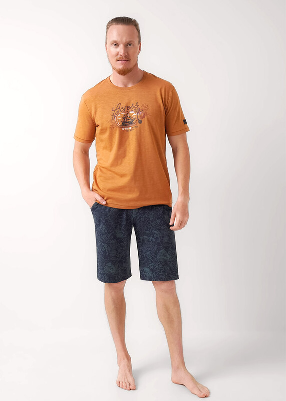 Набор для дома состоящий из футболки и шорт. Футболка из фактурного полотна ""флам"" с округлым вырезом горловины и коротким рукавом. Шорты из плотной кулирной глади в набивку на эластичном поясе с функциональными карманами и шнуром.