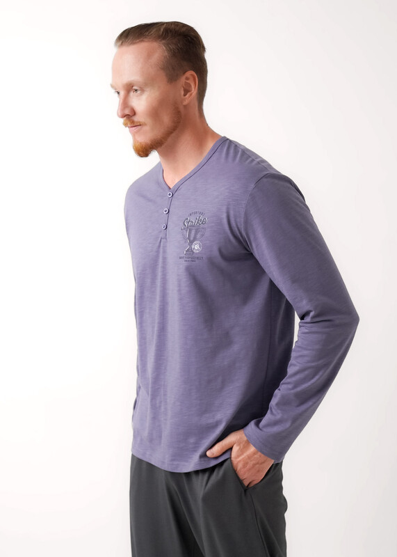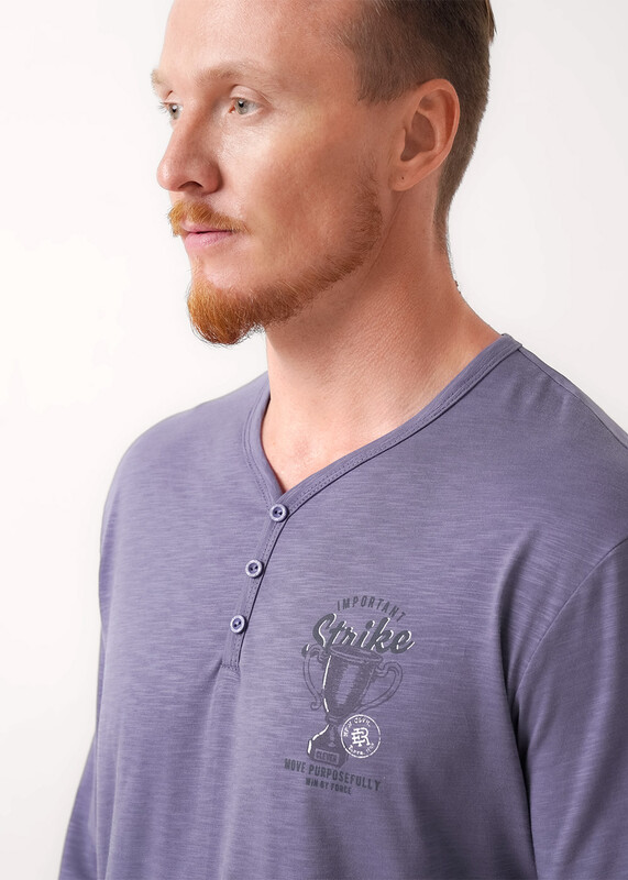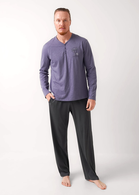 Набор мужской состоящий из джемпера и брюк. Джемпер из фактурного полотна ""флам"" с декоративной планкой на пуговицы и с имиджевой нашивкой. Брюки из фактурного полотна - ""пике"" на широком поясе с резинкой и регулируемым шнуром, по бокам удобные карманы.