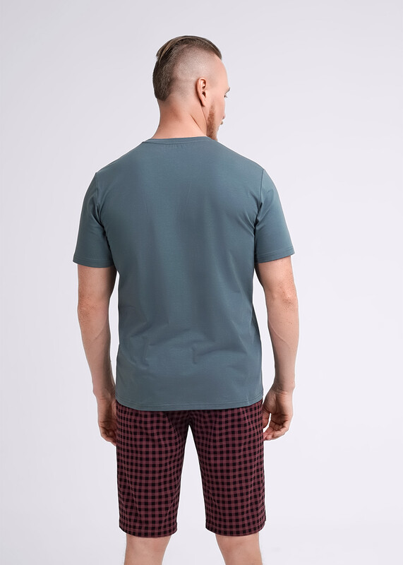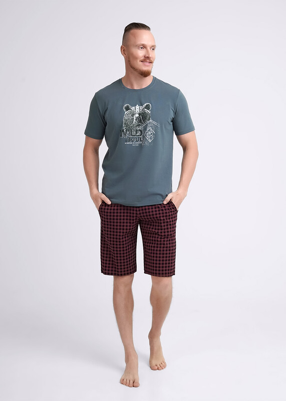Комплект мужской для дома состоящий из футболки и шорт. Футболка из трикотажного полотна с круглым вырезом горловины, коротким рукавом и стильным принтом. Шорты из трикотажного полотна на эластичном поясе с функциональными карманами и шнуром.