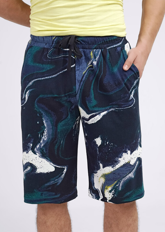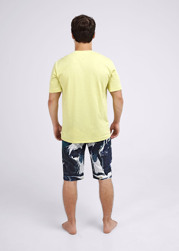 Комплект мужской для дома состоящий из футболки и шорт. Футболка из трикотажного полотна с круглым вырезом горловины, коротким рукавом и стильным принтом. Шорты из трикотажного полотна с набивкой на эластичном поясе с функциональными карманами и шнуром.