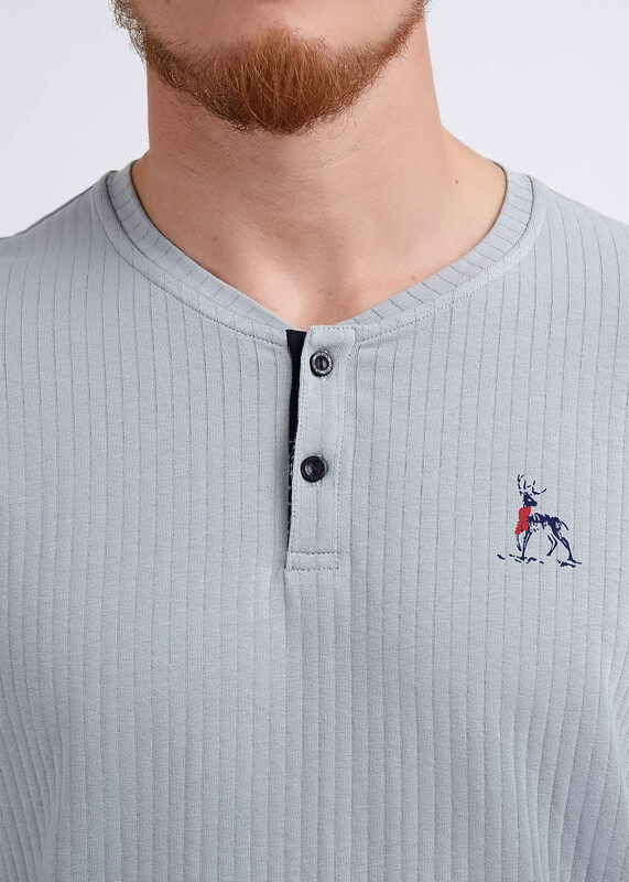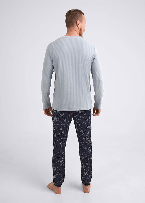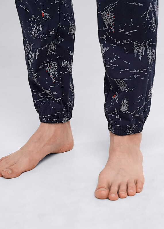 Комплект мужской для дома состоящий из джемпера и брюк. Джемпер из трикотажного полотна с функциональной планкой на пуговицы, стильной вышивкой. Брюки из плотного трикотажного полотна в набивку на эластичном поясе, карманами и шнуром.
