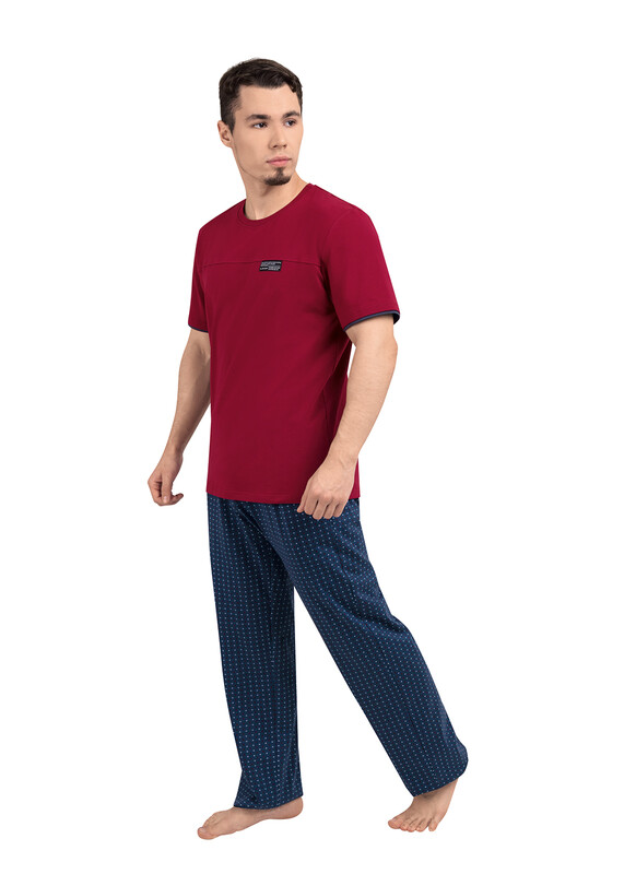 Комплект для дома, состоящий из футболки и брюк. Футболка из трикотажного полотна с круглым вырезом горловины, коротким рукавом, резом на детали переда и фирменными нашивками. Брюки на эластичном поясе с боковыми карманами и шнуром.