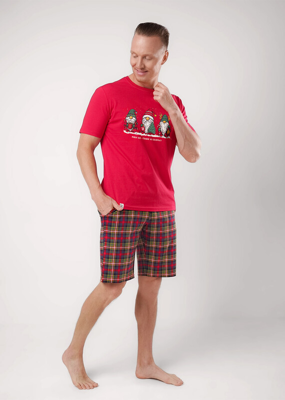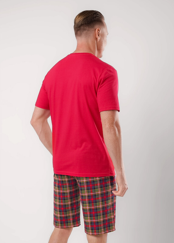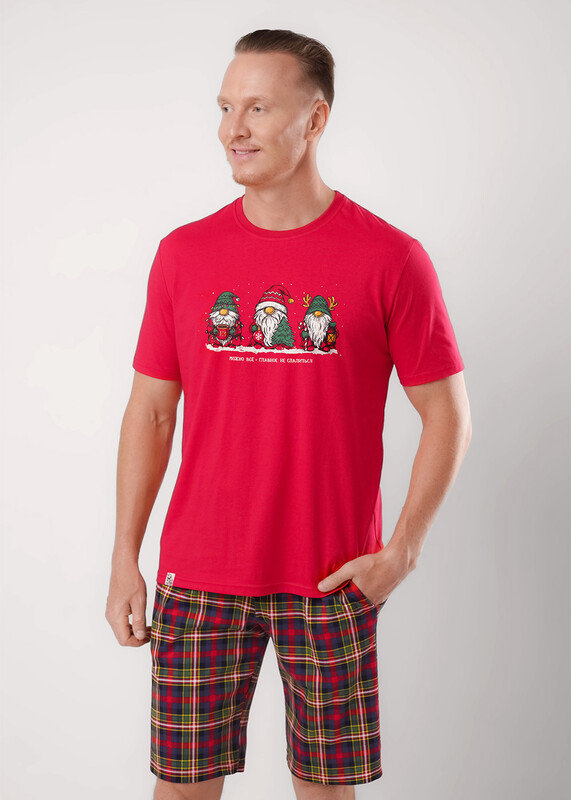 Набор, состоящий из футболки и шорт. Футболка из хлопковой кулирной глади с округлой горловиной, коротким рукавом и дизайнерским принтом. Шорты в клетку из кулирной глади с карбоном на эластичном поясе с функциональными карманами и шнуром.