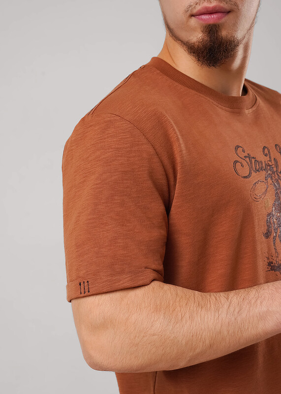 Набор мужской состоящий из футболки и шорт. Футболка из полотна ""флам"" с коротким рукавом, округлым вырезом горловины и дизайнерским принтом. Шорты из фактурного полотна - ""пике"" с декоративным гульфиком на эластичном поясе, по бокам удобные карманы.