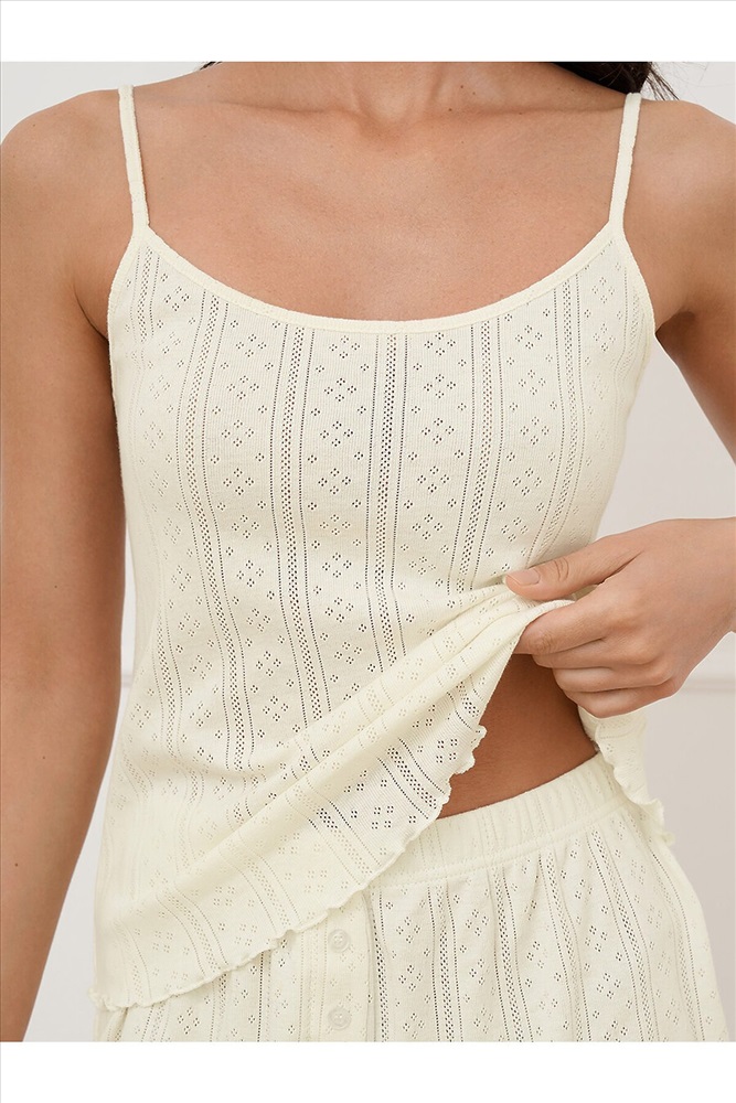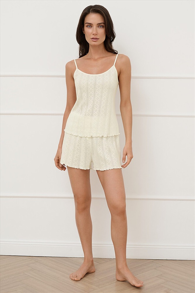 ID товара: 1211942 Состав: 100% Хлопок Сезон: Демисезон Длина: Средняя Фасон: Полуприлегающий Рукав: Без рукавов Основная ткань: Хлопок Страна бренда: Италия Страна производства: Китай Женская пижама, состоящая из топа и шорт. Комментарии к товару