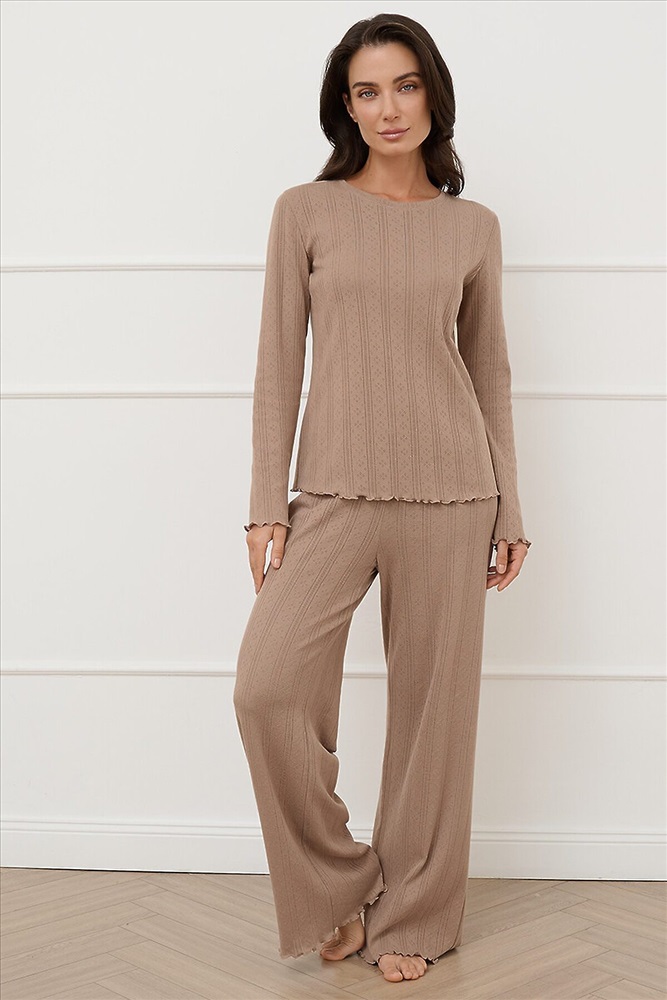 ID товара: 1211948 Состав: 100% Хлопок Сезон: Демисезон Длина: Полная Фасон: Полуприлегающий Рукав: короткие Основная ткань: Хлопок Страна бренда: Италия Страна производства: Китай Женская пижама, состоящая из футболки и брюк. Комментарии к товару