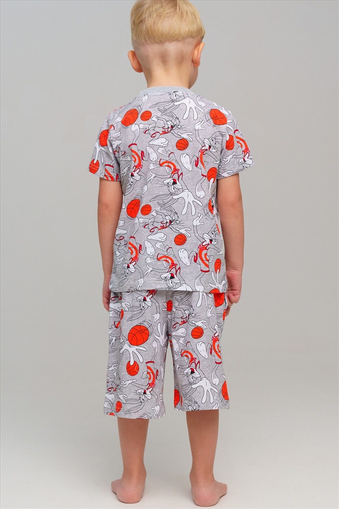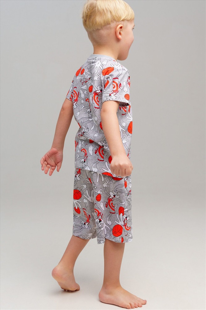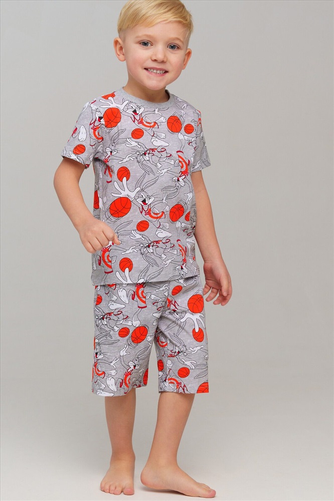 Пижама детская для мальчика. Футболка и шорты из эластичного и приятного на ощупь трикотажа. Шорты на резинке со шнурком. Высокое содержание хлопка 95%. Благодаря наличию эластана в составе ткани изделие держит форму и меньше мнется.