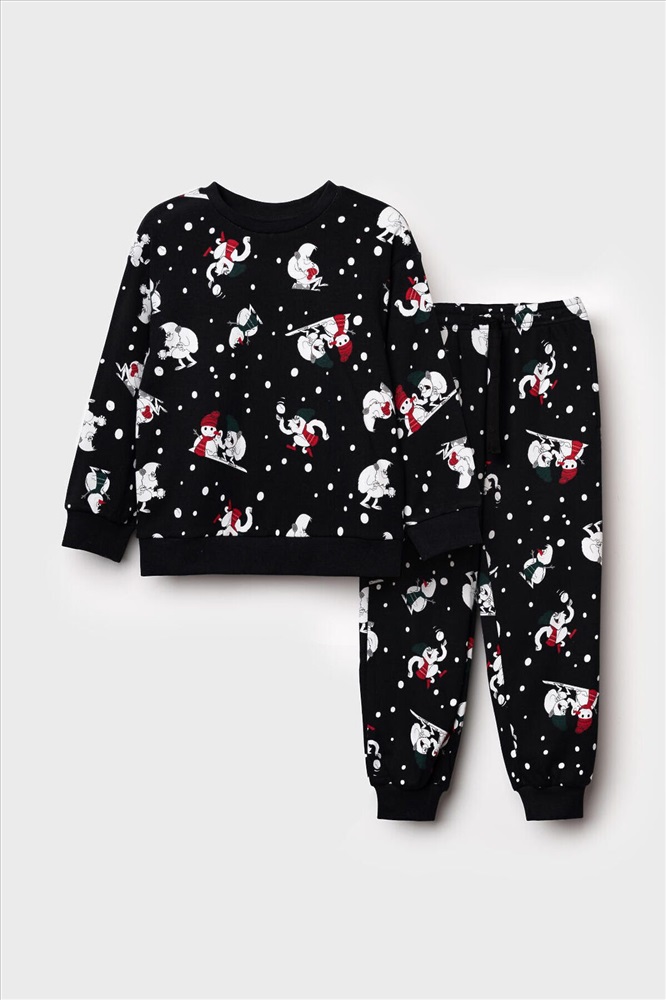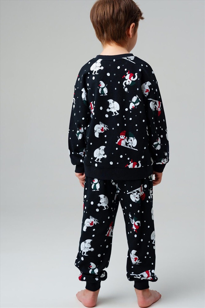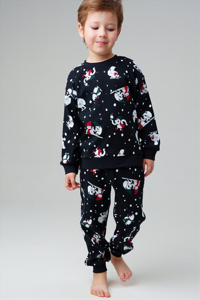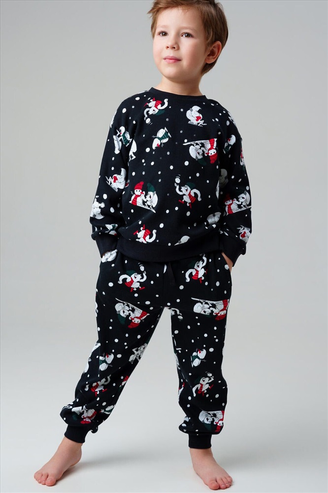 ID товара: 1215679 Состав: 100% Хлопок Сезон: Осень/Зима Длина: Полная Фасон: Прямой Рукав: Длинные Декоративные элементы: Принт Основная ткань: Хлопок Страна бренда: Германия Страна производства: Китай Черная детская трикотажная пижама для мальчика от PlayToday — уютный комплект для сна и отдыха, состоящий из кофты с длинными рукавами и брюк на резинке. Эта детская пижама выполнена из мягкого трикотажа, который приятно ощущается на коже и не вызывает раздражений. Особенности модели: + мягкий трикотаж — дышащий материал, комфортный даже для чувствительной кожи + кофта с длинными рукавами — защищает от холода ночью и в прохладное время года + брюки на удобной резинке — легко надевать, хорошо сидят на талии и не сползают + свободный крой — обеспечивает свободу движений, не стесняет во сне + отсутствие карманов — ничего не мешает, ребёнку удобно спать и двигаться + яркий принтованный дизайн — делает пижаму стильной, ребёнок будет носить её с удовольствием Эта детская пижама для мальчиков от PlayToday станет незаменимой частью домашнего гардероба. Она одинаково удобна для сна, игр и отдыха дома. Трикотаж легко стирается, быстро сохнет и не теряет форму. Благодаря эластичному поясу брюки хорошо фиксируются, а мягкий материал позволяет коже дышать. Совет по стилю: Пижаму можно носить как полноценный комплект для сна или использовать кофту и брюки отдельно как домашнюю одежду. Сочетайте пижамный верх с трикотажными штанами PlayToday, а брюки — с футболками, создавая разные варианты для дома. Размеры: модель представлена на рост 98, 104, 110, 116 и 122 см — подходит для мальчиков от 3 до 7 лет. Модная черная детская пижама с ярким принтом для мальчика от PlayToday — это идеальный выбор для сна, отдыха и домашних игр. Комментарии к товару