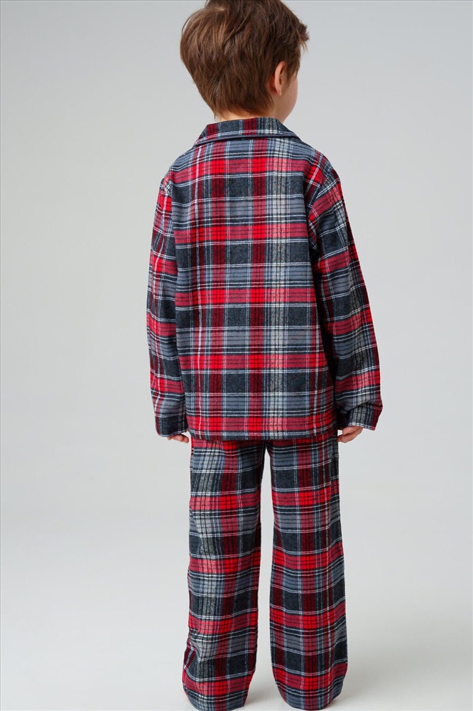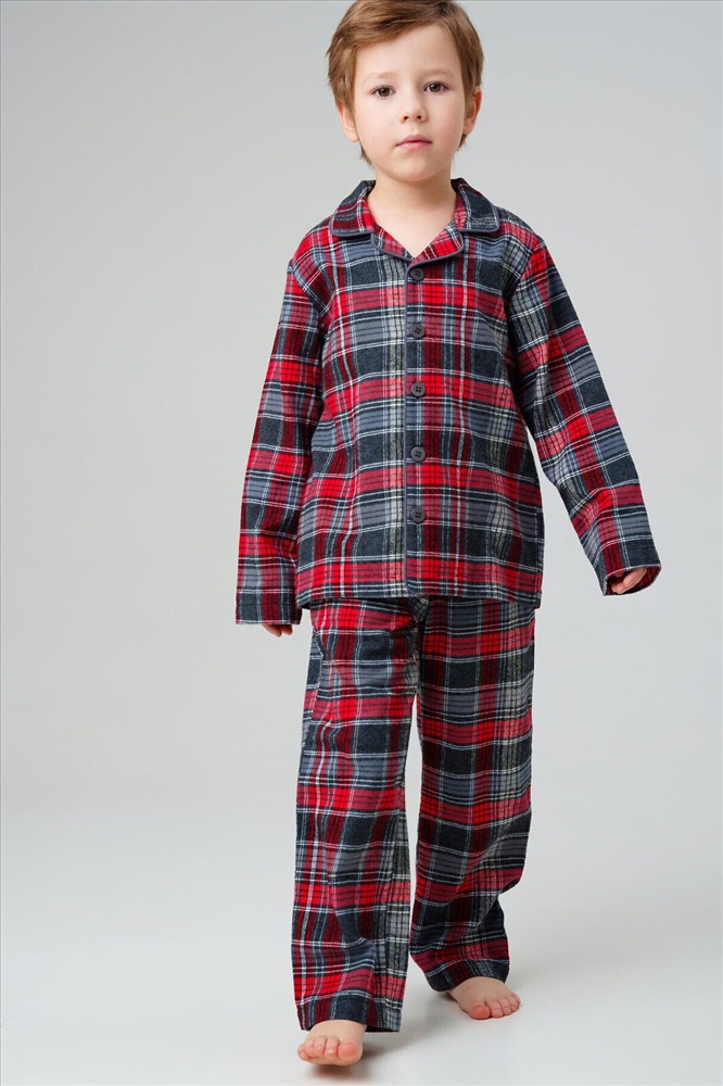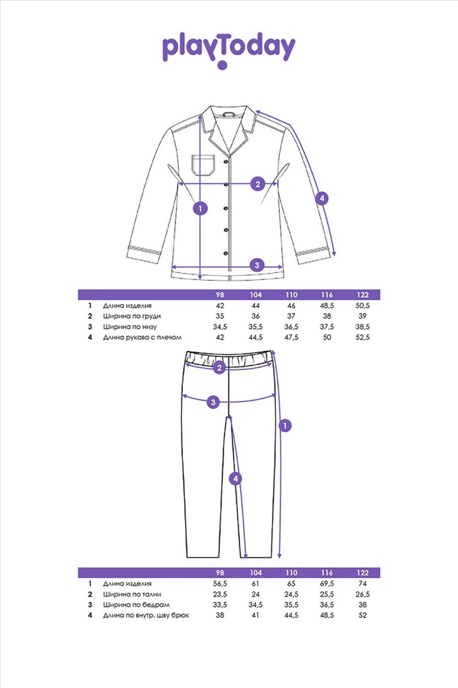 ID товара: 1215681 Состав: 100% Хлопок Сезон: Демисезон Длина: Полная Фасон: Прямой Рукав: Длинные Вид застежки: Пуговицы Декоративные элементы: Принт Основная ткань: Хлопок Страна бренда: Германия Страна производства: Китай Клетчатая детская пижама из фланели для мальчика от PlayToday — уютный комплект для сна и отдыха, состоящий из рубашки на пуговицах и длинных брюк. Тёплая фланелевая ткань с микроначёсом дарит мягкость, согревает и делает сон ребёнка комфортным в любое время года. Особенности модели: + рубашка на пуговицах — классическая застёжка, легко надеть и снять + два кармана на рубашке — практичная деталь, которую дети любят + тёплая фланель с микроначёсом — нежная, мягкая, согревающая + брюки на резинке — удобная посадка, свобода движений ночью и днём + клетчатый принт — стильный дизайн, который смотрится модно и по-взрослому + натуральный хлопок в составе — безопасен для чувствительной кожи ребёнка Эта пижама из фланели для мальчиков от PlayToday сочетает в себе уют, практичность и классический стиль. Благодаря мягкой ткани с начёсом она особенно хорошо подходит для холодного времени года. Брюки с резинкой обеспечивают удобную посадку, а свободный крой не сковывает движений. Фланель отличается прочностью и долговечностью — пижама сохраняет яркость клетки и мягкость даже после множества стирок. Совет по стилю: Эта клетчатая пижама для мальчиков универсальна: её можно использовать как полноценный комплект для сна или как домашнюю одежду. Рубашку удобно сочетать с джинсами или трикотажными брюками PlayToday, а фланелевые штаны отлично подойдут к футболкам и лонгсливам. Размеры: модель доступна на рост 98, 104, 110, 116 и 122 см — подходит для мальчиков от 3 до 7 лет. Модная клетчатая пижама для мальчика из фланели с микроначёсом от PlayToday — это уютная и практичная домашняя одежда, которая подарит тепло и комфорт каждый день. Комментарии к товару