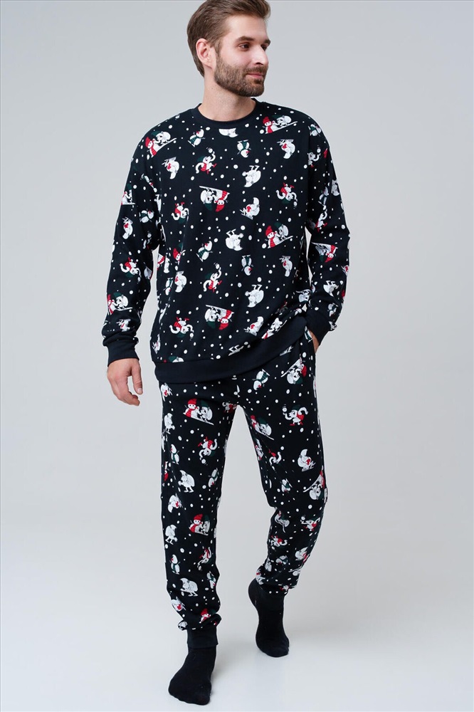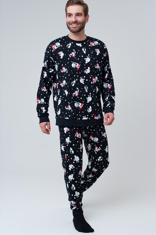 Мужская трикотажная пижама от PlayToday — мягкая, как домашние объятия, и стильная, как любимая вещь, в которую хочется переодеться после долгого дня. В ней удобно спать, отдыхать вечером дома или проводить выходные в атмосфере полного расслабления. Преимущества модели: + брюки на мягкой резинке — комфортная посадка без давления + отсутствие карманов — ничто не мешает во время сна + эластичный трикотаж — дышит и повторяет движения тела + мягкая ткань приятна к телу и не раздражает кожу + стильный принт — добавляет образу яркости и индивидуальности + универсальный фасон подходит для сна, отдыха дома и уютных вечеров Эта мужская пижама из трикотажа создана для максимального комфорта. Лёгкий и эластичный материал обеспечивает свободу движений, не перегревает и остаётся мягким даже после многочисленных стирок. Совет по стилю: Пижаму можно дополнить домашними тапочками или халатом PlayToday. В прохладное время года добавьте носки — и у вас получится идеальный комплект для сна и дома. Размеры: модель представлена в линейке S, M, L, XL, XXL — каждый мужчина найдёт удобный вариант. Мужская трикотажная пижама от PlayToday — это стильная и удобная домашняя одежда, которая подарит комфорт и уют каждый день.
