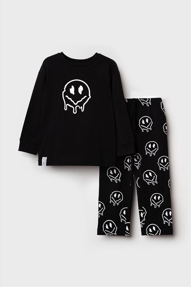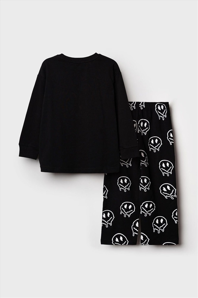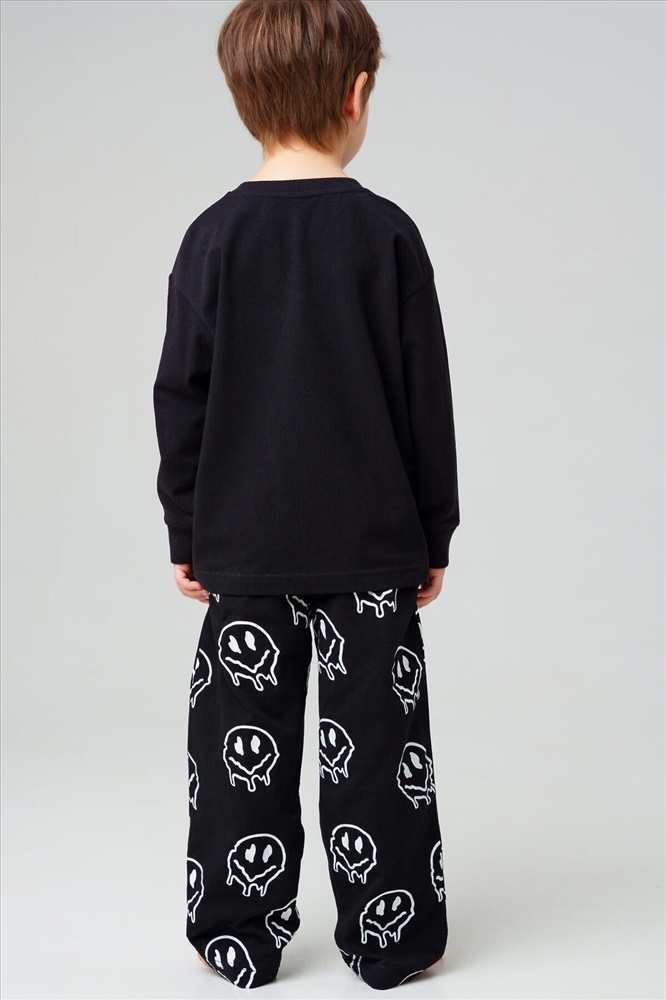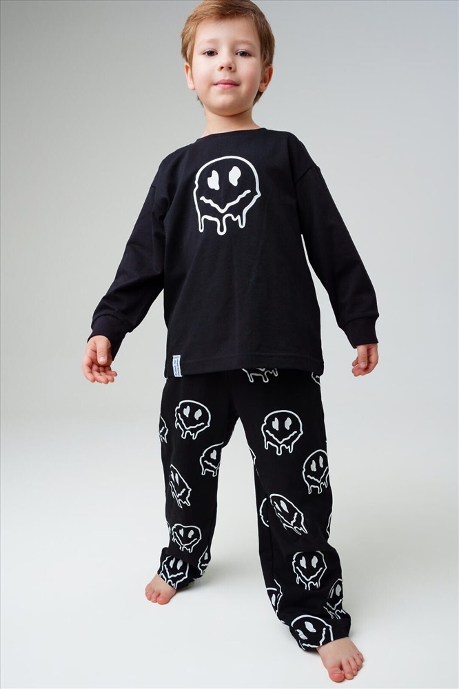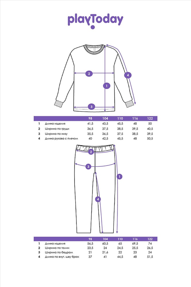 ID товара: 1215701 Состав: 95% Хлопок, 5% Эластан Сезон: Демисезон Длина: Полная Фасон: Свободный Рукав: Длинные Декоративные элементы: Принт Основная ткань: Хлопок Страна бренда: Германия Страна производства: Китай Черный детский трикотажный комплект для мальчика от PlayToday — стильный и удобный костюм, состоящий из лонгслива с длинным рукавом и брюк на резинке. Модель разработана специально для детей от 3 до 7 лет и станет отличным решением как для дома, так и для похода в детский сад. Особенности модели: + мягкий и эластичный трикотаж — приятен к телу, не раздражает кожу и позволяет коже дышать + лонгслив с длинным рукавом — универсальная замена футболке в прохладное время года + брюки на комфортной резинке — легко надевать и удобно носить, хорошо держатся на талии + светящийся в темноте принт на футболке и брюках — эффектный дизайн, который понравится детям и сделает образ ярким и необычным + отсутствие карманов — ничего не мешает во время сна, игр и занятий в детском саду + свободный крой — не сковывает движений, подходит для активных игр и прогулок Совет по стилю: Комплект можно носить как самостоятельный образ или сочетать с худи, жилеткой или ветровкой PlayToday. Брюки легко комбинируются и с другими футболками или лонгсливами, создавая разные варианты для повседневного гардероба. Размеры: модель представлена на рост 98, 104, 110, 116 и 122 см — подходит для мальчиков от 3 до 7 лет. Модный детский трикотажный костюм для мальчика с лонгсливом и брюками на резинке от PlayToday — идеальный выбор для детского сада, дома и активных прогулок. Комментарии к товару