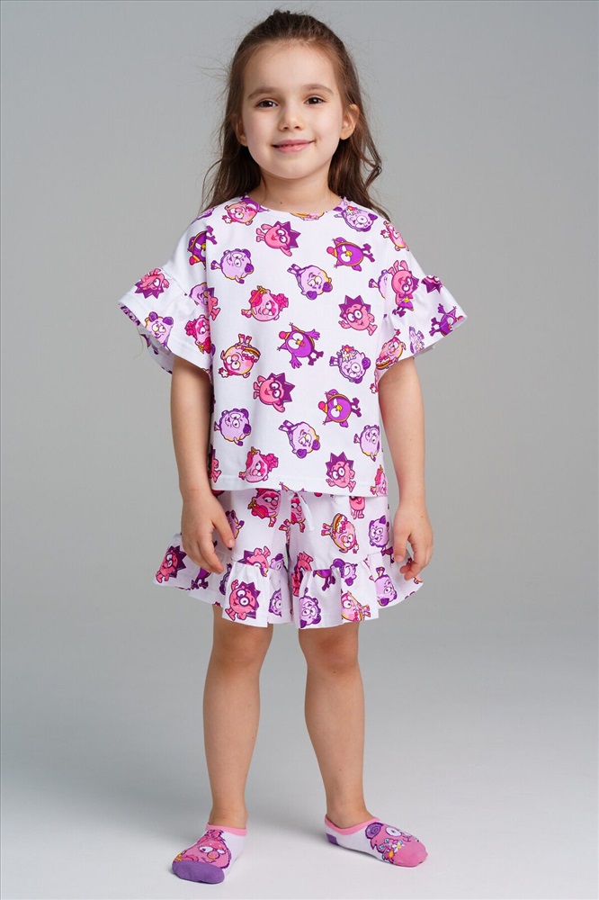 Комплект: футболка, шорты из трикотажа с высоким содержанием хлопка 95%. Благодаря наличию эластана в составе ткани, изделие проще в уходе и держит форму. Шорты прямого кроя. Эластичный пояс с тесьмой позволяет легко надевать шорты и утягивать до комфортной посадки.