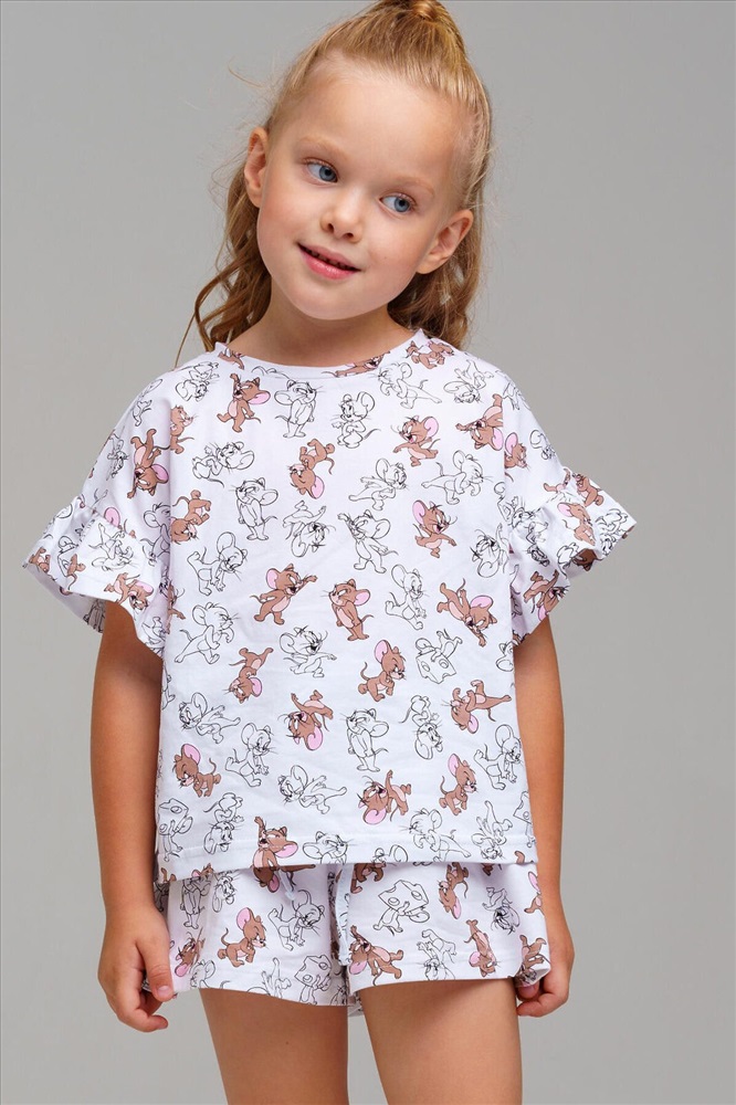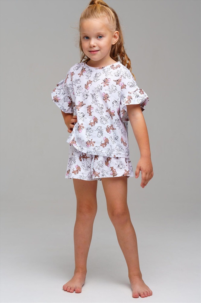 Пижама: футболка, шорты. Эластичный пояс с тесьмой позволяет легко надевать шорты и утягивать до комфортной посадки. Высокое содержание хлопка 93%. Благодаря наличию эластана в составе ткани, изделие проще в уходе и держит форму.