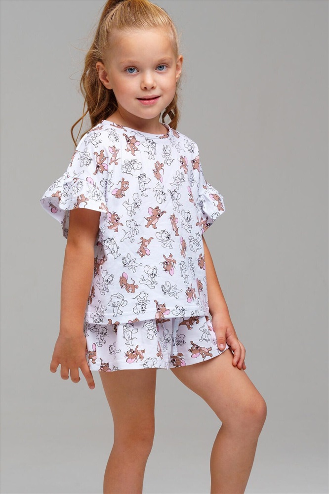 Пижама: футболка, шорты. Эластичный пояс с тесьмой позволяет легко надевать шорты и утягивать до комфортной посадки. Высокое содержание хлопка 93%. Благодаря наличию эластана в составе ткани, изделие проще в уходе и держит форму.