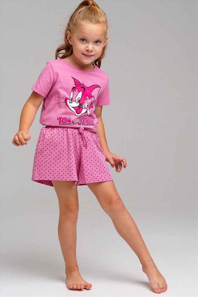 Пижама: футболка, шорты с высоким содержанием хлопка. Благодаря наличию эластана в составе ткани, изделие проще в уходе и держит форму. Шорты свободного кроя. Эластичный пояс с тесьмой позволяет легко надевать шорты и утягивать до комфортной посадки.