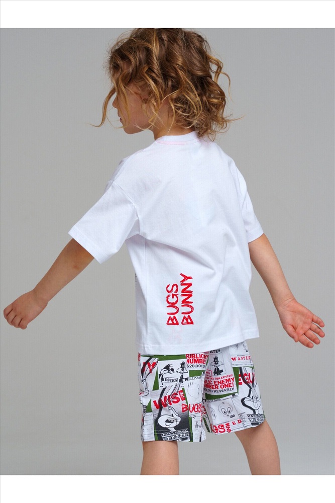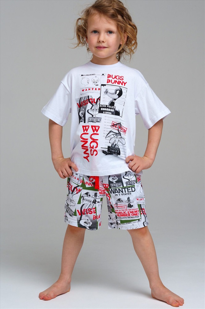 Страна производства: Китай Пижама: футболка, шорты из качественного и приятного на ощупь трикотажа джерси. 100% хлопок. Футболка oversize. Шорты comfort fit с эластичным поясом со шнурком. Карманы в боковых швах.