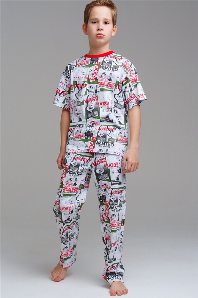 ID товара: 978012 Состав: 100% Хлопок Сезон: Демисезон Длина: Полная Фасон: Прямой Рукав: короткие Декоративные элементы: Принт Основная ткань: Хлопок Страна бренда: Германия Страна производства: Китай Пижама: футболка, брюки из качественного и приятного на ощупь трикотажа джерси. 100% хлопок. Футболка oversize. Брюки comfort fit с эластичным поясом со шнурком. Карманы в боковых швах. Комментарии к товару